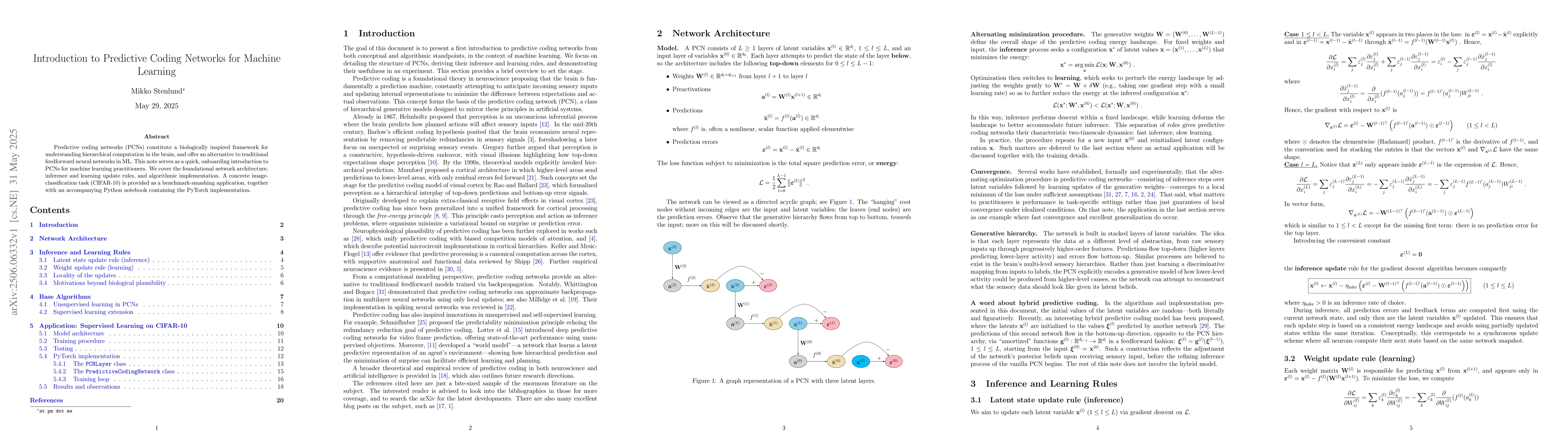 This paper introduces predictive coding networks (PCNs) as a biologically inspired framework for machine learning, offering an alternative to traditional feedforward neural networks. PCNs are shown to be effective on the CIFAR-10 image classification task with a provided PyTorch implementation.