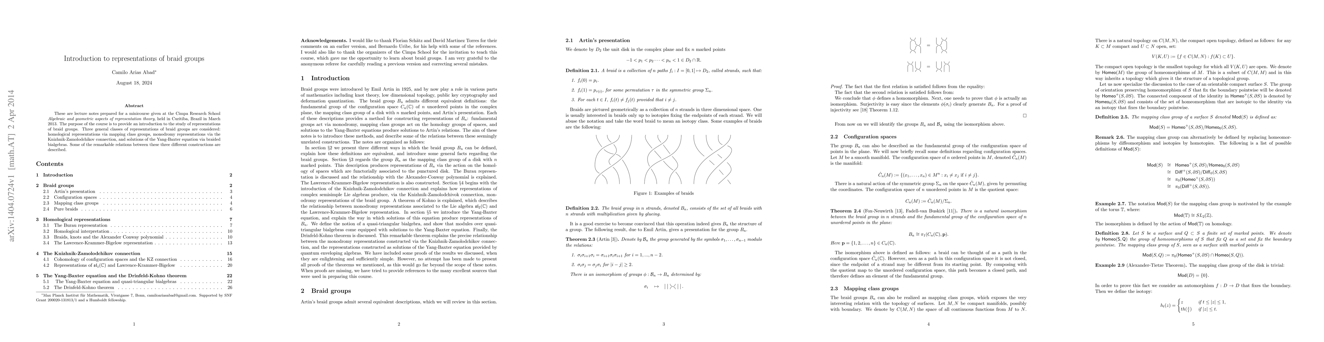 Lecture notes for a minicourse introducing representations of braid groups, focusing on homological, monodromy, and Yang-Baxter equation approaches, and highlighting their interconnections. Presented at the Cimpa Research School in Curitiba, Brazil, in March 2013.