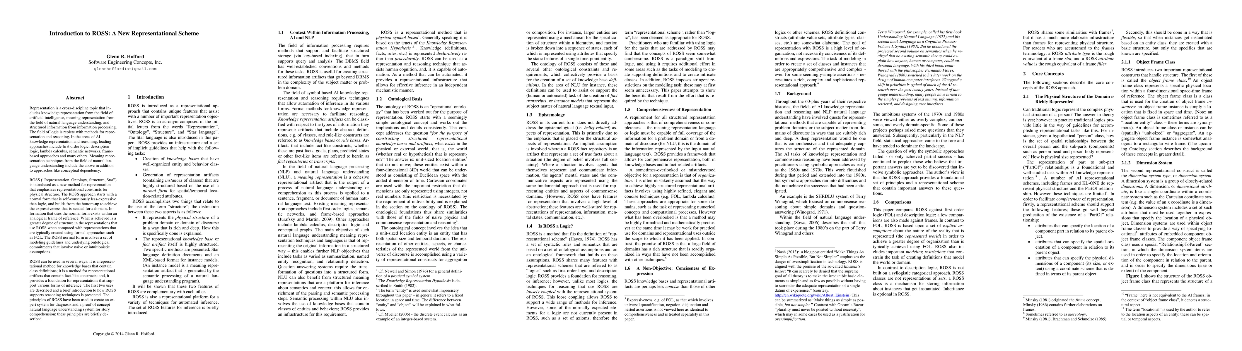 ROSS is a novel knowledge representation framework emphasizing physical structure, featuring a language called "Star" for ontology specification and an "instance model" for natural language meaning representation. The paper outlines the rationale and philosophical underpinnings of this new representational scheme.