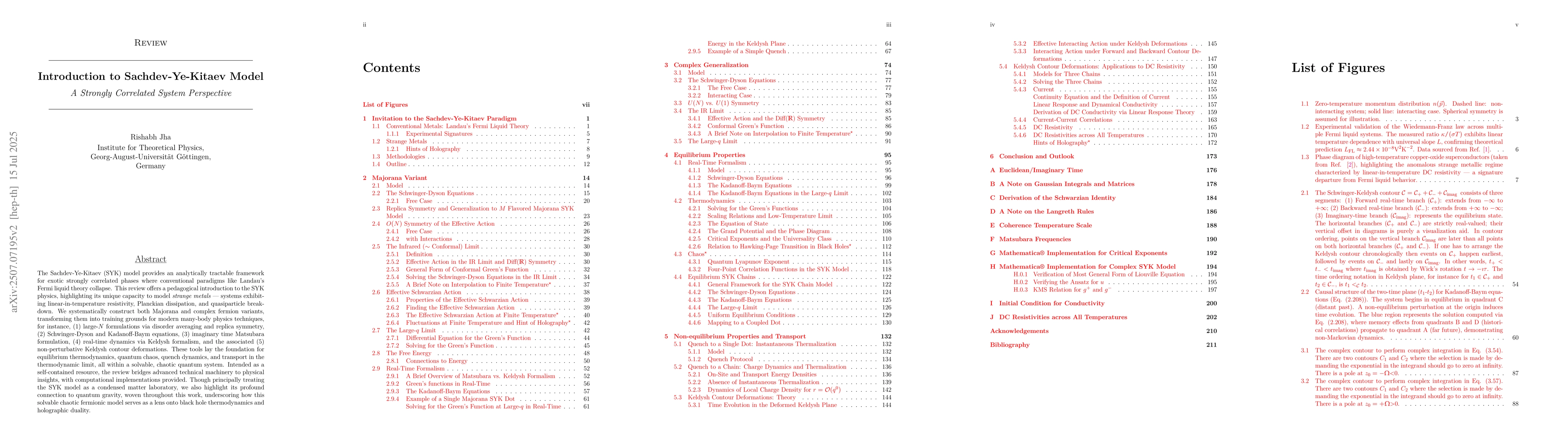 The Sachdev-Ye-Kitaev (SYK) model provides an analytically tractable framework for exotic strongly correlated phases where conventional paradigms like Landau's Fermi liquid theory collapse. This review offers a pedagogical introduction to the SYK physics, highlighting its unique capacity to model \textit{strange metals} -- systems exhibiting linear-in-temperature resistivity, Planckian dissipation, and quasiparticle breakdown. We systematically construct both Majorana and complex fermion variants, transforming them into training grounds for modern many-body physics techniques, for instance, (1) large-$N$ formulations via disorder averaging and replica symmetry, (2) Schwinger-Dyson and Kadanoff-Baym equations, (3) imaginary time Matsubara formulation, (4) real-time dynamics via Keldysh formalism, and the associated (5) non-perturbative Keldysh contour deformations. These tools lay the foundation for equilibrium thermodynamics, quantum chaos, quench dynamics, and transport in the thermodynamic limit, all within a solvable, chaotic quantum system. Intended as a self-contained resource, the review bridges advanced technical machinery to physical insights, with computational implementations provided. Though principally treating the SYK model as a condensed matter laboratory, we also highlight its profound connection to quantum gravity, woven throughout this work, underscoring how this solvable chaotic fermionic model serves as a lens onto black hole thermodynamics and holographic duality.