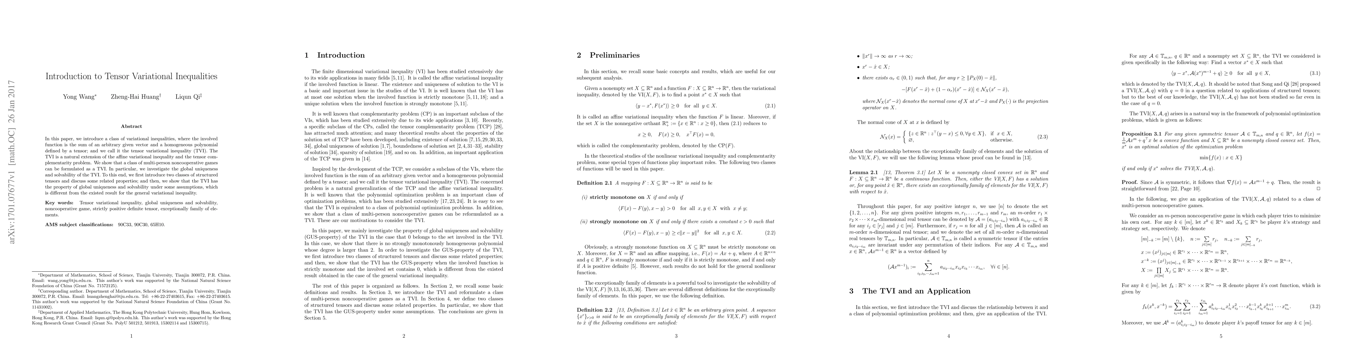 This paper introduces tensor variational inequalities (TVIs), extending affine variational inequalities and the tensor complementarity problem. It demonstrates that multi-person noncooperative games can be formulated as TVIs and establishes their global uniqueness and solvability under certain conditions, differing from general variational inequalities.