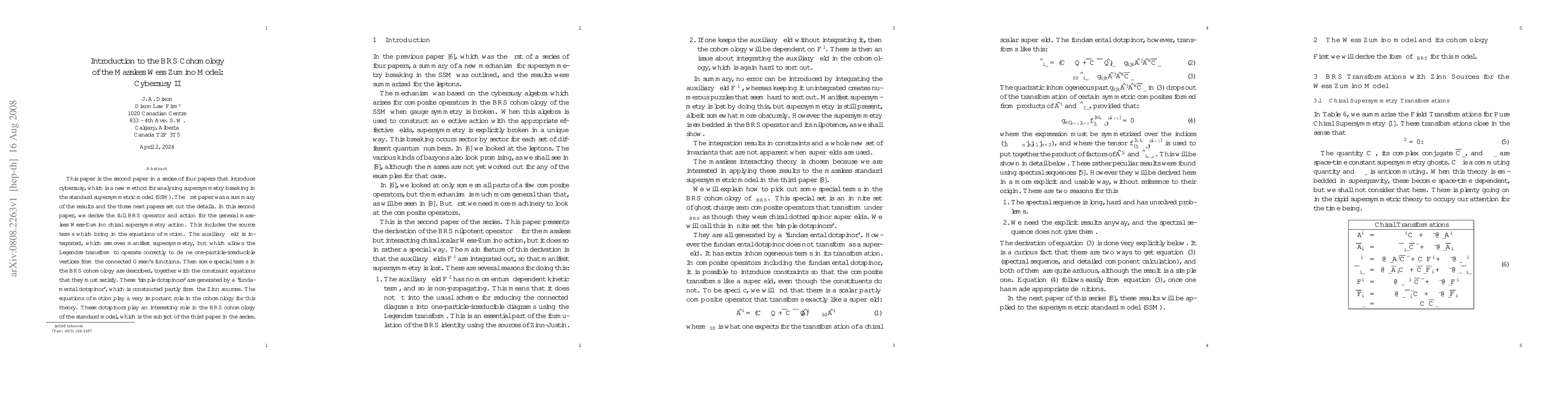 This paper is the second paper in a series of four papers that introduce cybersusy, which is a new method for analyzing supersymmetry breaking in the standard supersymmetric model (SSM). The first paper was a summary of the results and the three next papers set out the details. In this second paper, we derive the full BRS operator and action for the general massless Wess-Zumino chiral supersymmetry action. This includes the source terms which bring in the equations of motion. The auxiliary field is integrated, which removes manifest supersymmetry, but which allows the Legendre transform to operate correctly to define one-particle-irreducible vertices from the connected Green's functions. Then some special terms in the BRS cohomology are described, together with the constraint equations that they must satisfy. These `simple dotspinors' are generated by a `fundamental dotspinor', which is constructed partly from the Zinn sources. The equations of motion play a very important role in the cohomology for this theory. These dotspinors play an interesting role in the BRS cohomology of the standard model, which is the subject of the third paper in the series.