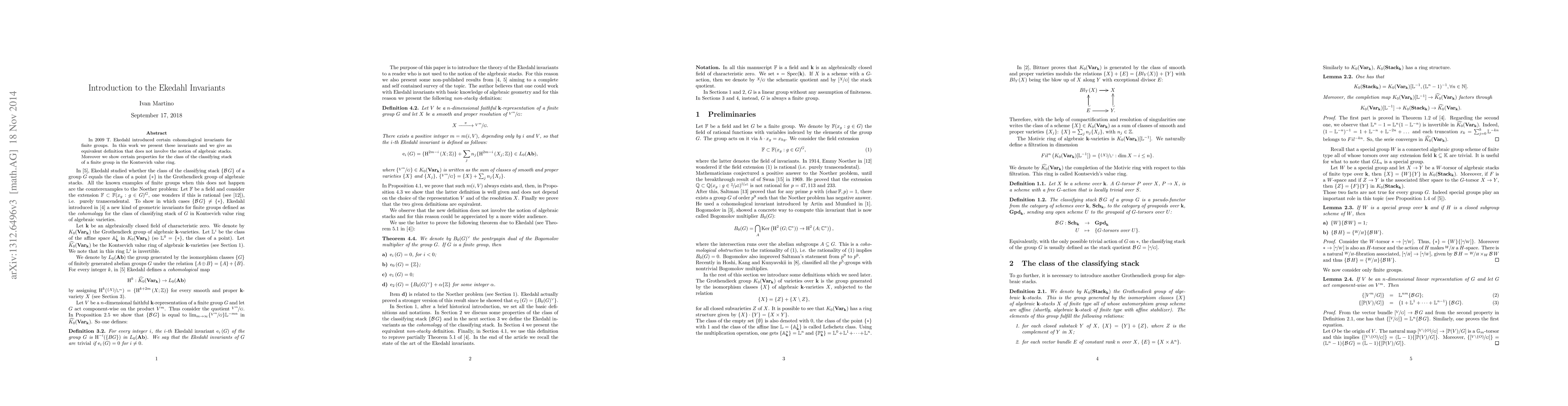 This paper introduces Ekedahl invariants, cohomological invariants for finite groups introduced by T. Ekedahl in 2009, and explores their properties and provides an equivalent definition for these invariants.