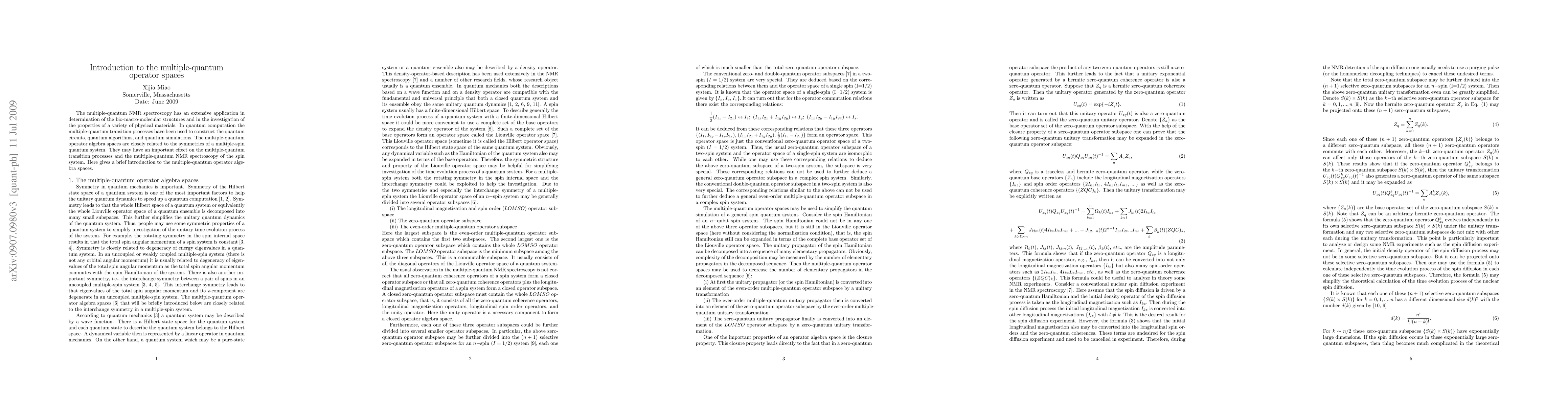 The multiple-quantum NMR spectroscopy has an extensive application in determination of the bio-macro-molecular structures and in the investigation of the properties of a variety of physical materials. In quantum computation the multiple-quantum transition processes have been used to construct the quantum circuits, quantum algorithms, and quantum simulations. The multiple-quantum operator algebra spaces are closely related to the symmetries of a multiple-spin quantum system. They may have an important effect on the multiple-quantum transition processes and the multiple-quantum NMR spectroscopy of the spin system. Here gives a brief introduction to the multiple-quantum operator algebra spaces.