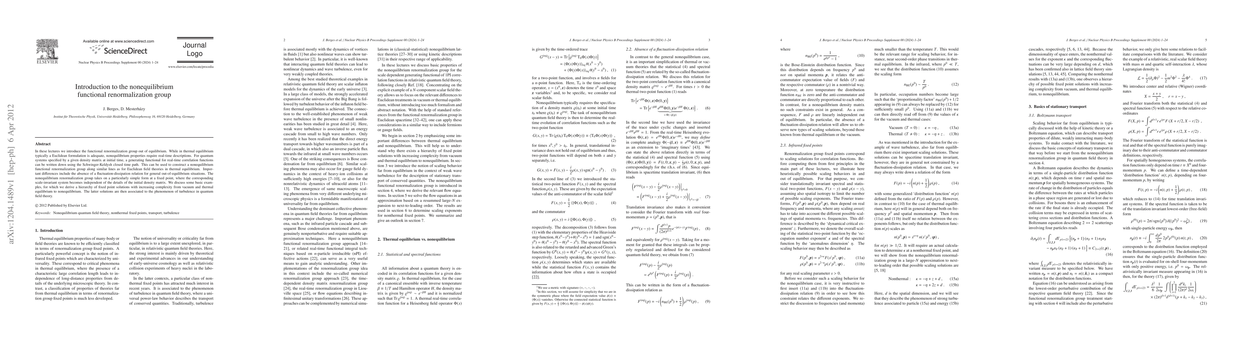 This paper introduces the nonequilibrium functional renormalization group, emphasizing its use for real-time quantum systems via the Schwinger-Keldysh formalism. It highlights the differences from equilibrium cases, notably the lack of a fluctuation-dissipation relation, and discusses fixed points in scale-invariant systems, linking complex fixed points to phenomena like turbulence in quantum field theory.