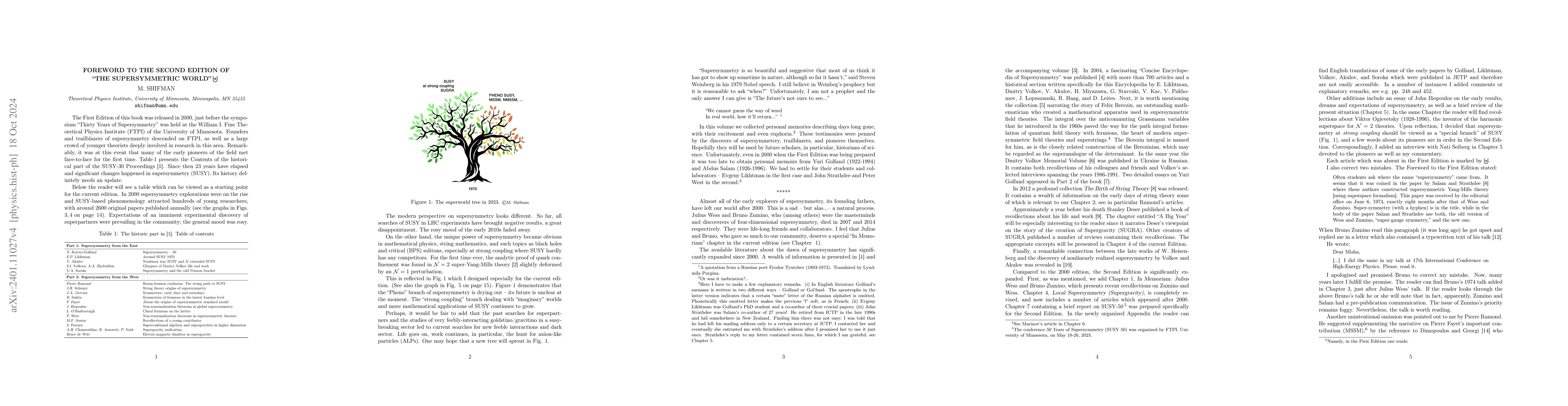 The first edition of "The Supersymmetric World" was published in 2000, preceding a major symposium at the University of Minnesota's FTPI. The second edition, set for release in 2024, updates the significant developments in supersymmetry research over the past 23 years.