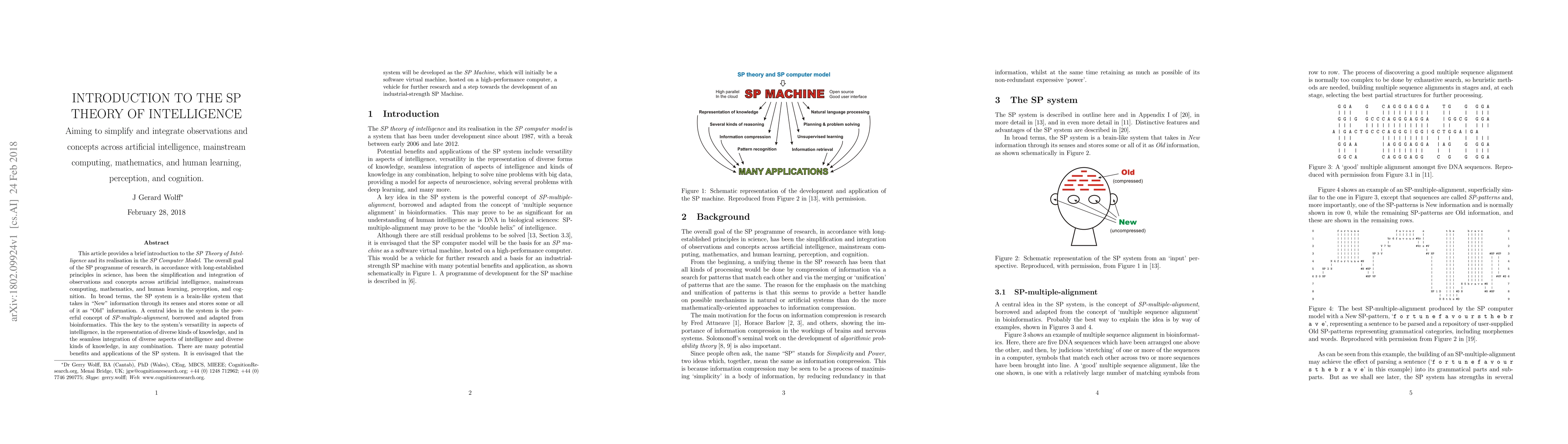 This paper introduces the "SP theory of intelligence" and its implementation in the "SP Computer Model," aiming to simplify and integrate observations across AI, computing, mathematics, and human cognition. The SP system leverages "SP-multiple-alignment" to represent diverse knowledge and integrate various intelligence aspects, with potential future development into an industrial-strength SP Machine.