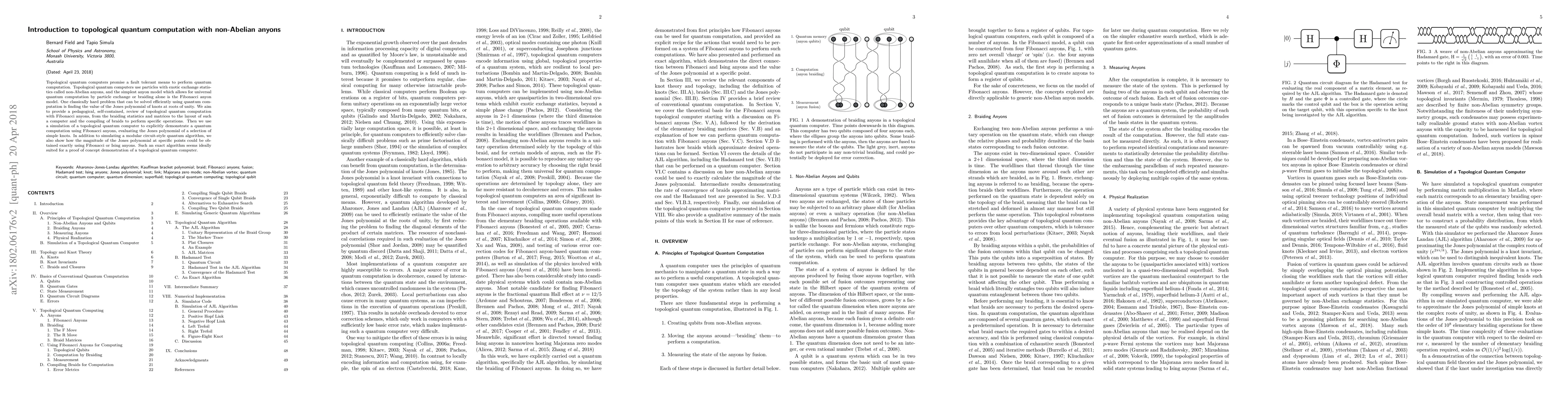 This paper reviews topological quantum computation with non-Abelian Fibonacci anyons, explaining their braiding and use in quantum algorithms, and demonstrates the computation of the Jones polynomial for knots using a simulated topological quantum computer. It also proposes an exact algorithm for evaluating the Jones polynomial using Fibonacci or Ising anyons.