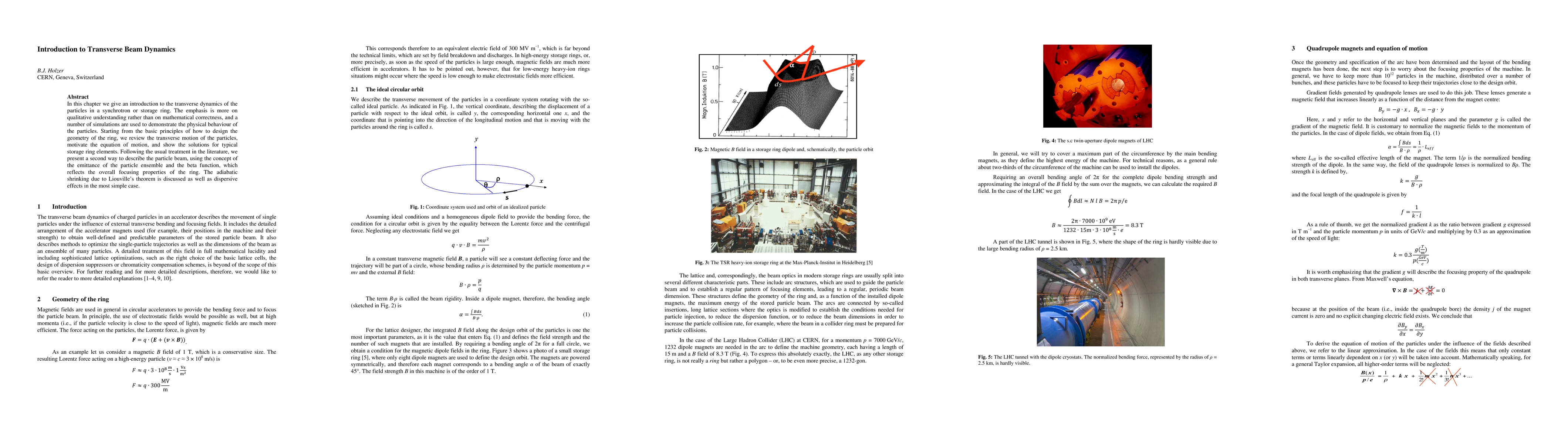 In this chapter we give an introduction to the transverse dynamics of the particles in a synchrotron or storage ring. The emphasis is more on qualitative understanding rather than on mathematical correctness, and a number of simulations are used to demonstrate the physical behaviour of the particles. Starting from the basic principles of how to design the geometry of the ring, we review the transverse motion of the particles, motivate the equation of motion, and show the solutions for typical storage ring elements. Following the usual treatment in the literature, we present a second way to describe the particle beam, using the concept of the emittance of the particle ensemble and the beta function, which reflects the overall focusing properties of the ring. The adiabatic shrinking due to Liouville's theorem is discussed as well as dispersive effects in the most simple case.