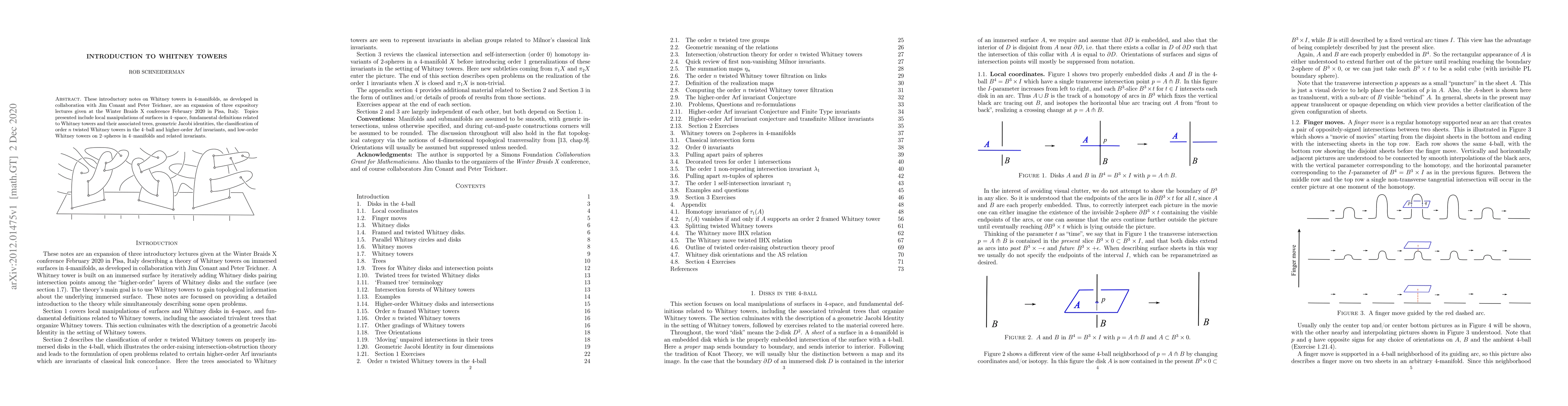 This paper introduces Whitney towers in 4-manifolds, focusing on their definitions, geometric properties, and classification. It also covers the classification of order n twisted Whitney towers and the role of higher-order Arf invariants in the context of these structures.