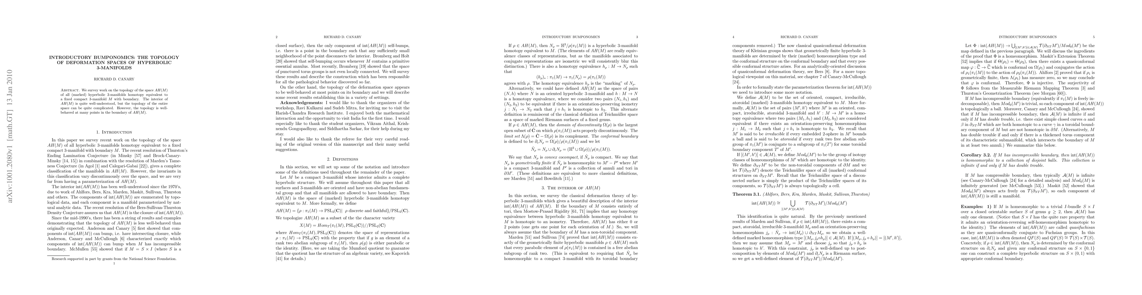 We survey work on the topology of the space AH(M) of all (marked) hyperbolic 3-manifolds homotopy equivalent to a fixed compact 3-manifold M with boundary. The interior of AH(M) is quite well-understood, but the topology of the entire space can be quite complicated. However, the topology is well-behaved at many points in the boundary of AH(M).