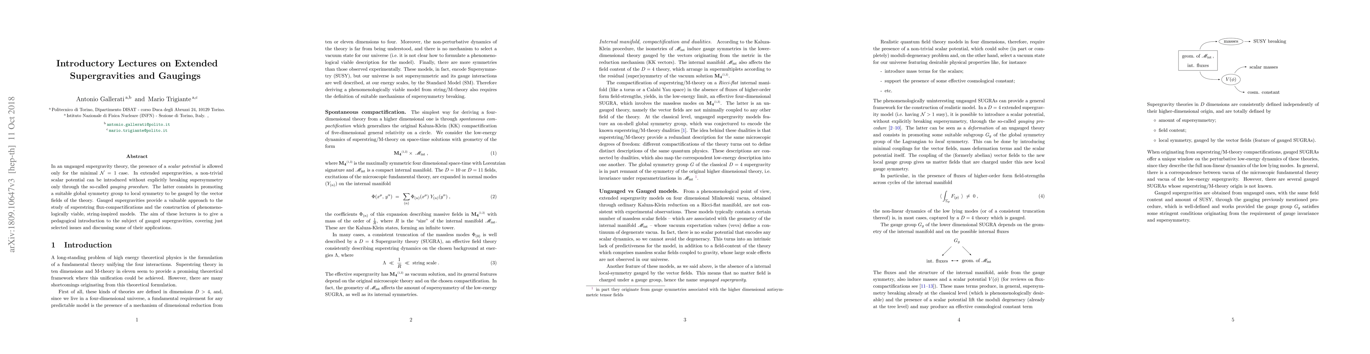 This paper provides a pedagogical introduction to gauged extended supergravities, illustrating how gauging a global symmetry group can introduce a non-trivial scalar potential without breaking supersymmetry. It highlights applications in superstring flux-compactifications and the construction of string-inspired, phenomenological models.