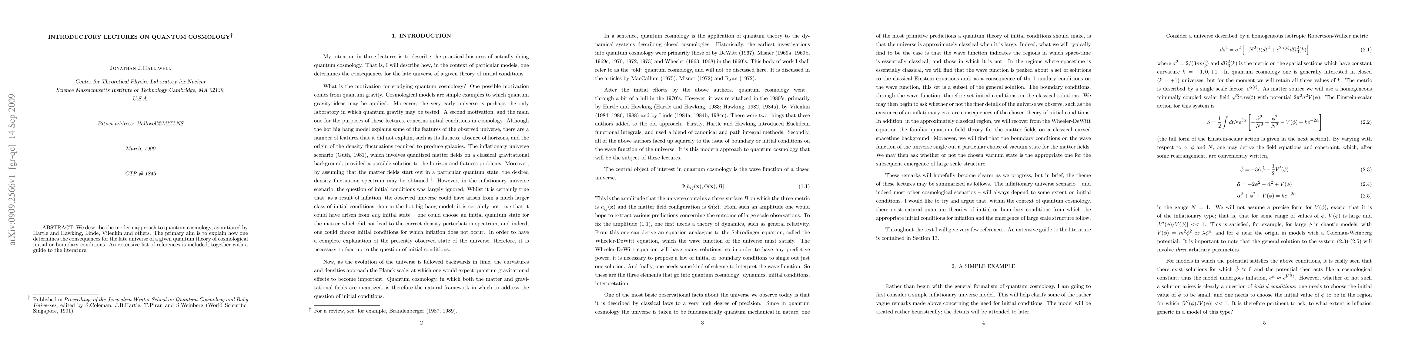 We describe the modern approach to quantum cosmology, as initiated by Hartle and Hawking, Linde, Vilenkin and others. The primary aim is to explain how one determines the consequences for the late universe of a given quantum theory of cosmological initial or boundary conditions. An extensive list of references is included, together with a guide to the literature. It also includes a detailed treatment of the WKB interpretation, which is relevant to a forthcoming article by the author on the decoherent histories approach to quantum cosmology.