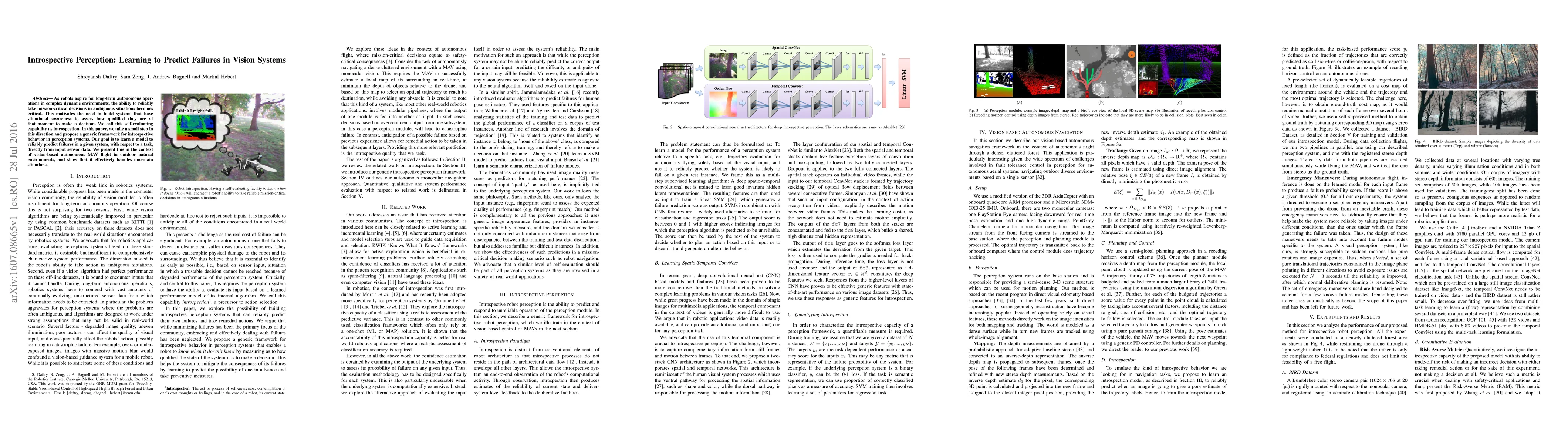 This paper proposes a framework for introspective perception systems to predict failures in vision-based autonomous MAV flight, aiming to enhance situational awareness and decision-making reliability in complex environments. The model learns to predict failures directly from sensor data, demonstrating effectiveness in handling uncertain situations.