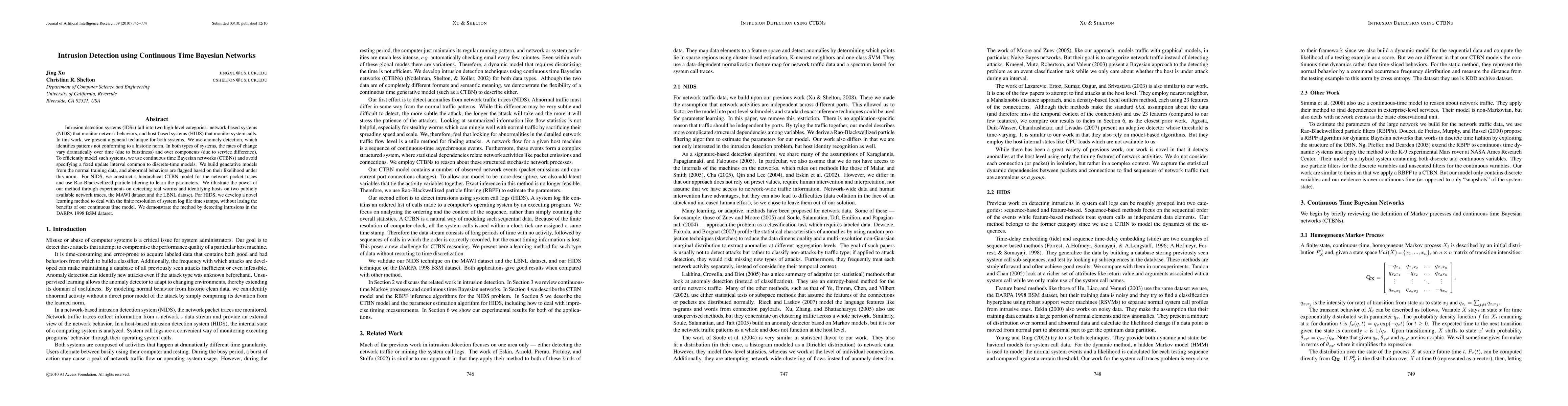 This research paper proposes a new technique for intrusion detection using continuous time Bayesian networks, allowing for efficient modeling of dynamic systems and improved anomaly detection accuracy.