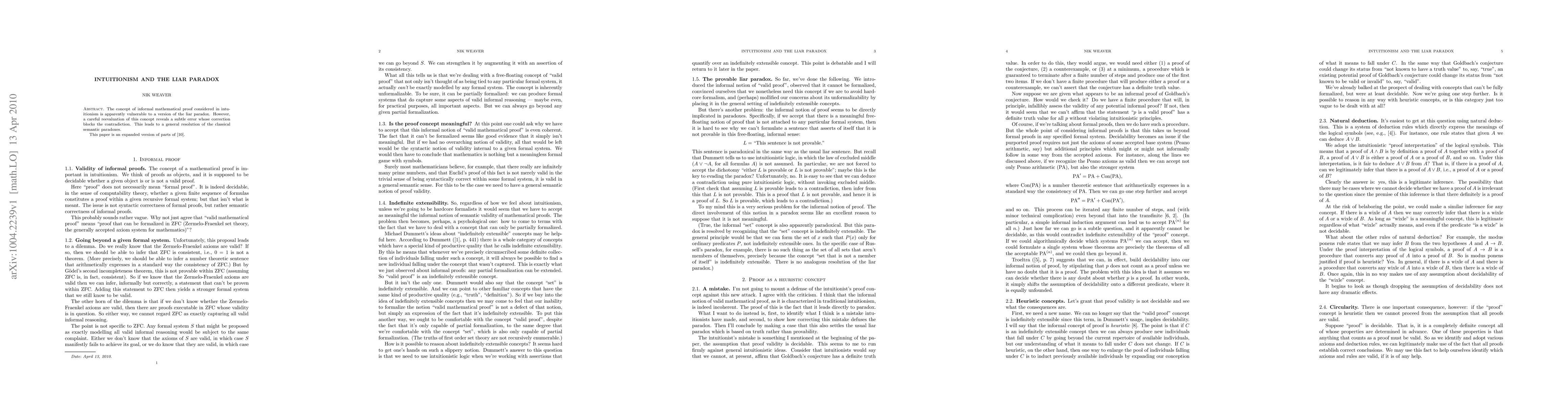 This paper reevaluates intuitionism's informal mathematical proofs, identifying a subtle error that leads to a version of the liar paradox, but corrects this error to resolve the paradox and other classical semantic paradoxes. It builds on earlier work in "Constructive truth and circularity."