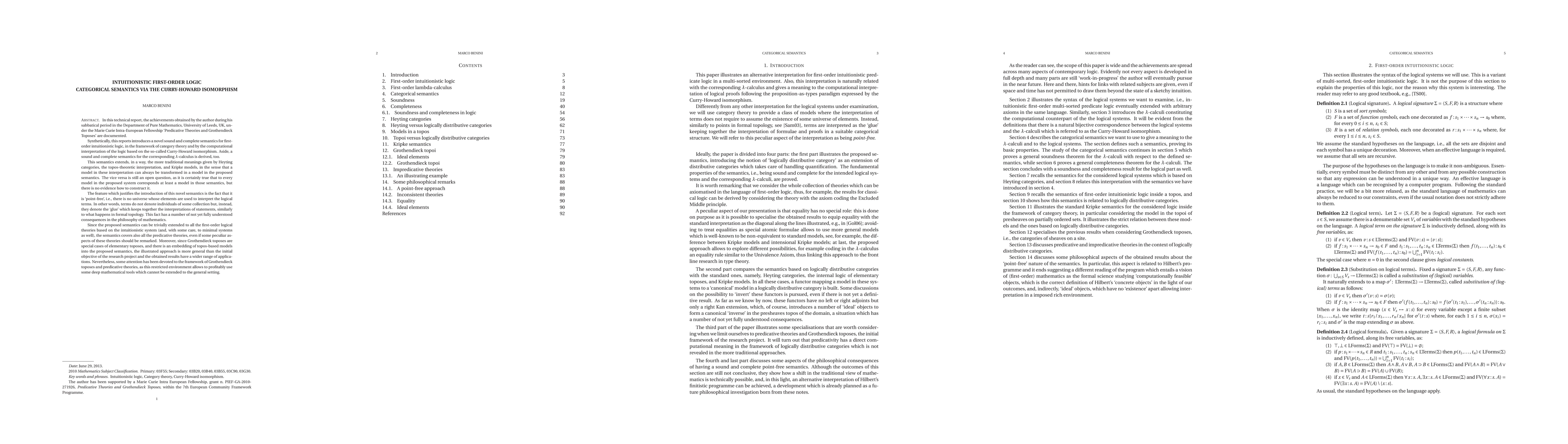 This reports introduces a novel sound and complete semantics for first order intuitionistic logic, in the framework of category theory and by the computational interpretation of the logic based on the so-called Curry-Howard isomorphism. Aside, a sound and complete semantics for the corresponding lambda-calculus is derived, too. This semantics extends, in a way, the more traditional meanings given by Heyting categories, the topos-theoretic interpretation, and Kripke models. The feature which justifies the introduction of this novel semantics is the fact that it is 'point-free', i.e., there is no universe whose elements are used to interpret the logical terms. In other words, terms do not denote individuals of some collection but, instead, they denote the 'glue' which keeps together the interpretations of statements, similarly to what happens in formal topology. Since the proposed semantics can be trivially extended to all the first-order logical theories based on the intuitionistic system (and, with some care, to minimal systems as well), the semantics covers also all the predicative theories, even if some peculiar aspects of these theories should be remarked.