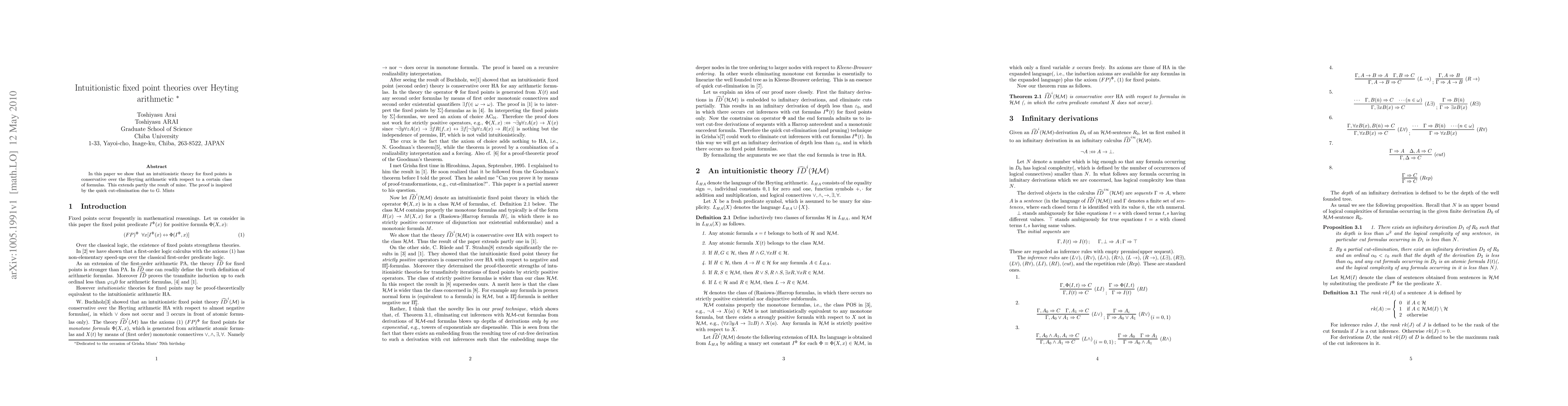 This paper demonstrates that an intuitionistic fixed point theory is conservative over Heyting arithmetic for a specific class of formulas, extending previous results. The proof leverages G. Mints' efficient cut-elimination method.