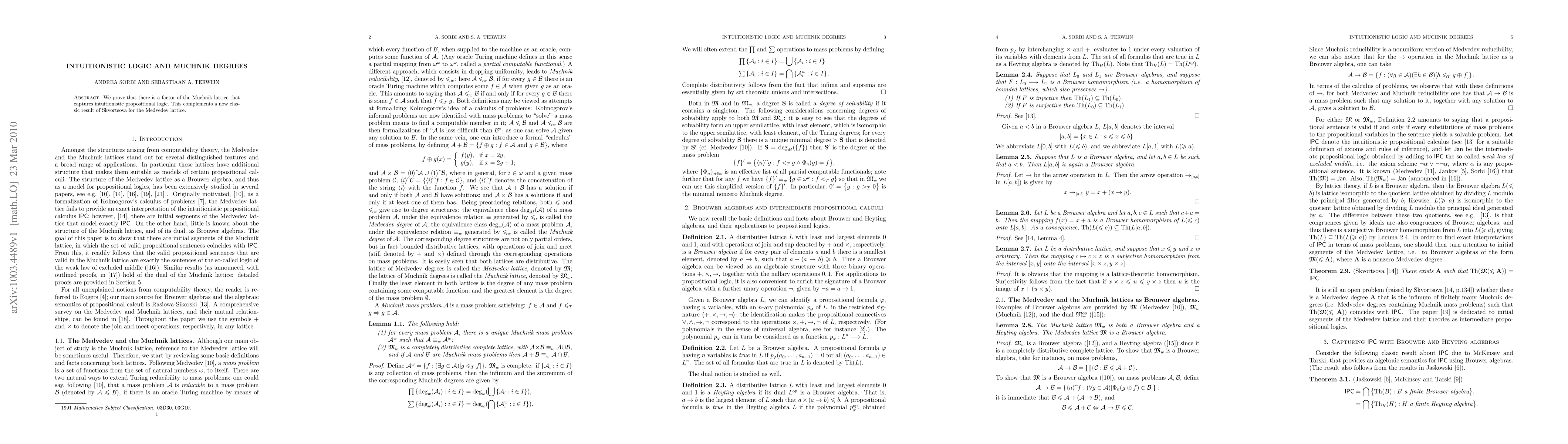 This paper demonstrates a connection between intuitionistic propositional logic and a specific factor within the Muchnik lattice, extending Skvortsova's foundational work on the Medvedev lattice. The result highlights the structural parallels between these lattices and logic systems.