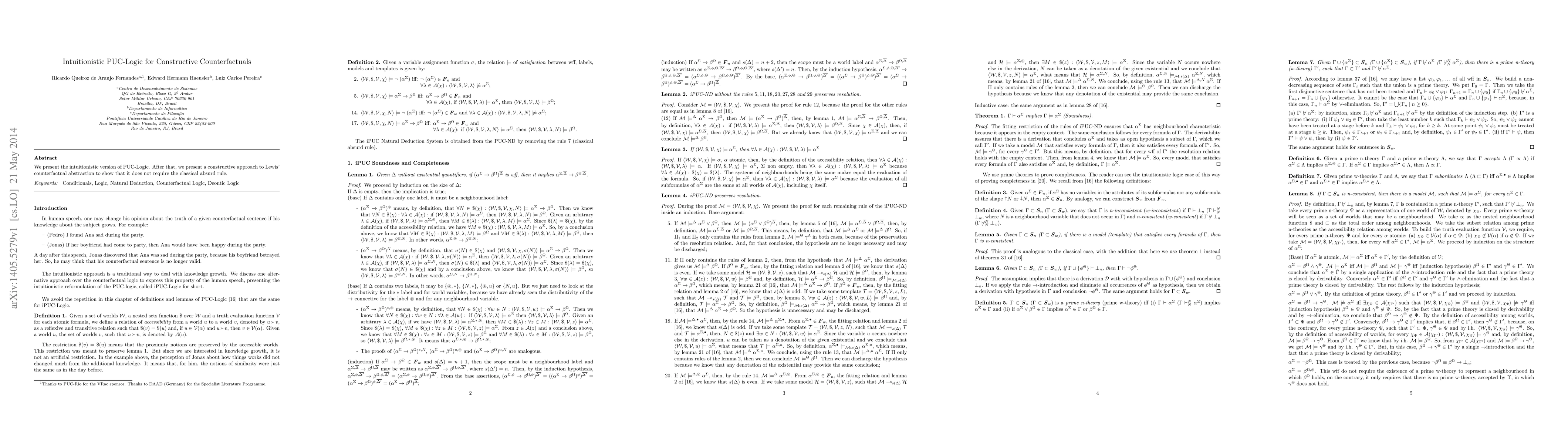 Summary: This paper introduces intuitionistic PUC-Logic and demonstrates a constructive method for counterfactuals in Lewis' framework, proving that it does not necessitate the classical absurd rule.