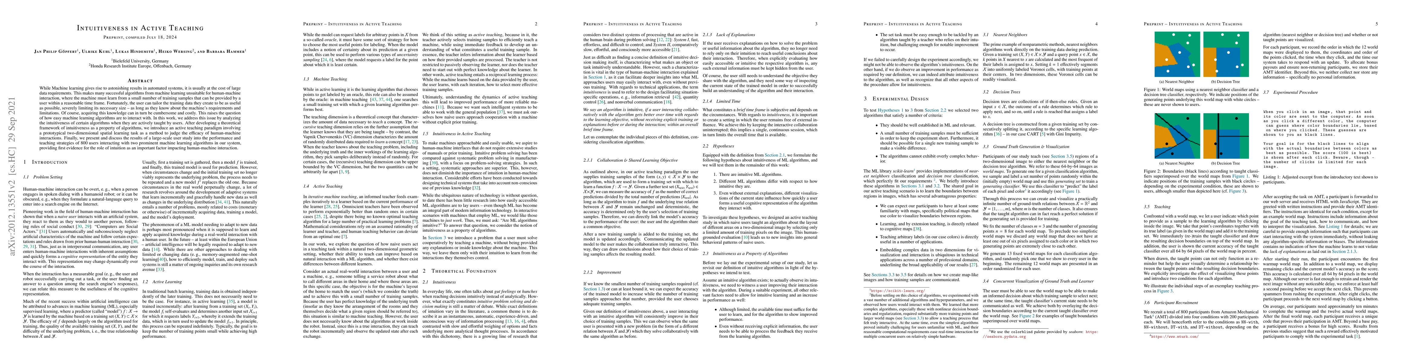 While Machine learning gives rise to astonishing results in automated systems, it is usually at the cost of large data requirements. This makes many successful algorithms from machine learning unsuitable for human-machine interaction, where the machine must learn from a small number of training samples that can be provided by a user within a reasonable time frame. Fortunately, the user can tailor the training data they create to be as useful as possible, severely limiting its necessary size -- as long as they know about the machine's requirements and limitations. Of course, acquiring this knowledge can in turn be cumbersome and costly. This raises the question of how easy machine learning algorithms are to interact with. In this work, we address this issue by analyzing the intuitiveness of certain algorithms when they are actively taught by users. After developing a theoretical framework of intuitiveness as a property of algorithms, we introduce an active teaching paradigm involving a prototypical two-dimensional spatial learning task as a method to judge the efficacy of human-machine interactions. Finally, we present and discuss the results of a large-scale user study into the performance and teaching strategies of 800 users interacting with two prominent machine learning algorithms in our system, providing first evidence for the role of intuition as an important factor impacting human-machine interaction.