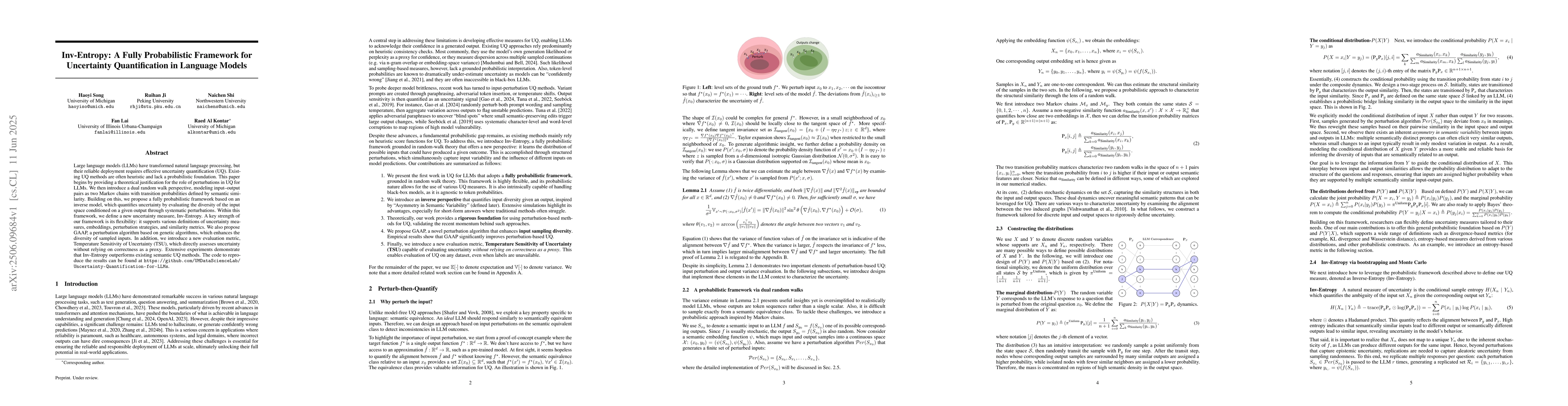 Researchers developed a new framework to quantify uncertainty in language models, called Inv-Entropy, which uses perturbations and a dual random walk perspective to evaluate the diversity of input space conditioned on a given output.