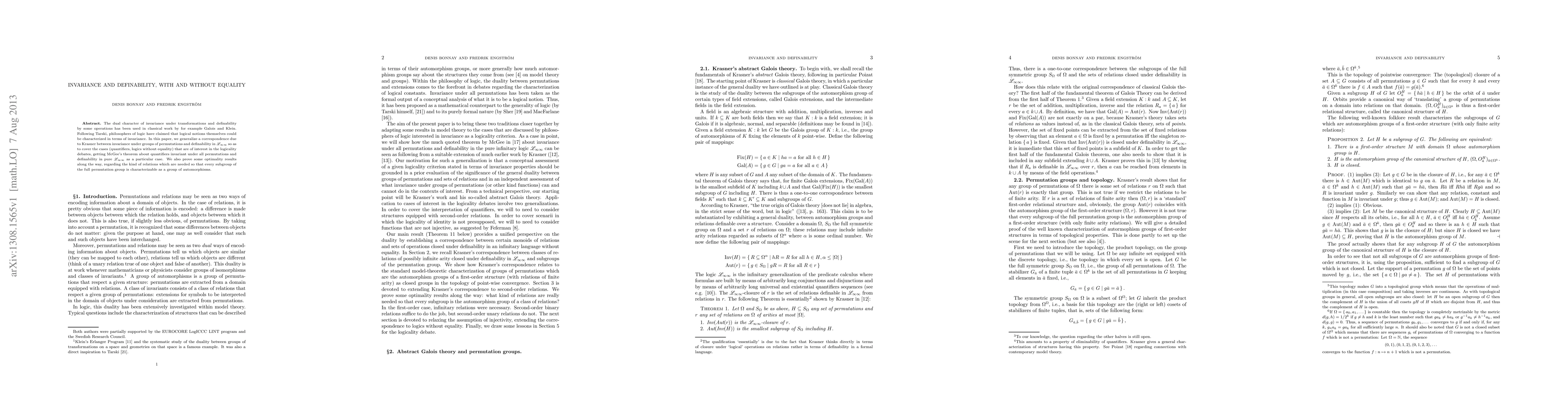 The dual character of invariance under transformations and definability by some operations has been used in classical work by for example Galois and Klein. Following Tarski, philosophers of logic have claimed that logical notions themselves could be characterized in terms of invariance. In this paper, we generalize a correspondence due to Krasner between invariance under groups of permutations and definability in $\La_{\infty\infty}$ so as to cover the cases (quantifiers, logics without equality) that are of interest in the logicality debates, getting McGee's theorem about quantifiers invariant under all permutations and definability in pure $\La_{\infty\infty}$ as a particular case. We also prove some optimality results along the way, regarding the kind of relations which are needed so that every subgroup of the full permutation group is characterizable as a group of automorphisms.
