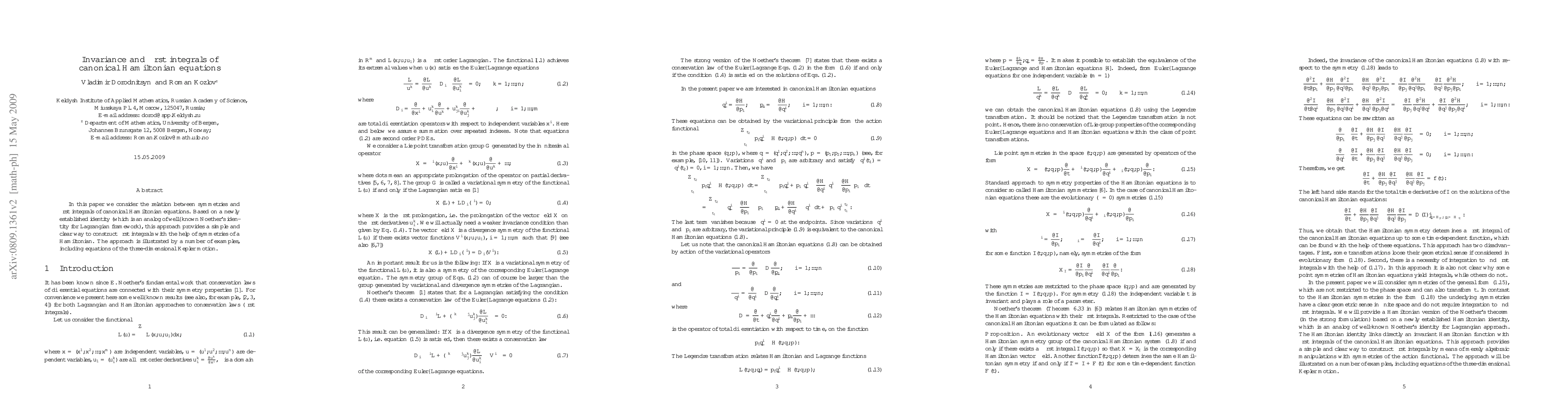 This paper establishes a new identity analogous to Noether's theorem for Lagrangian systems, linking symmetries to first integrals in canonical Hamiltonian equations. It demonstrates the method through examples, notably the three-dimensional Kepler motion.