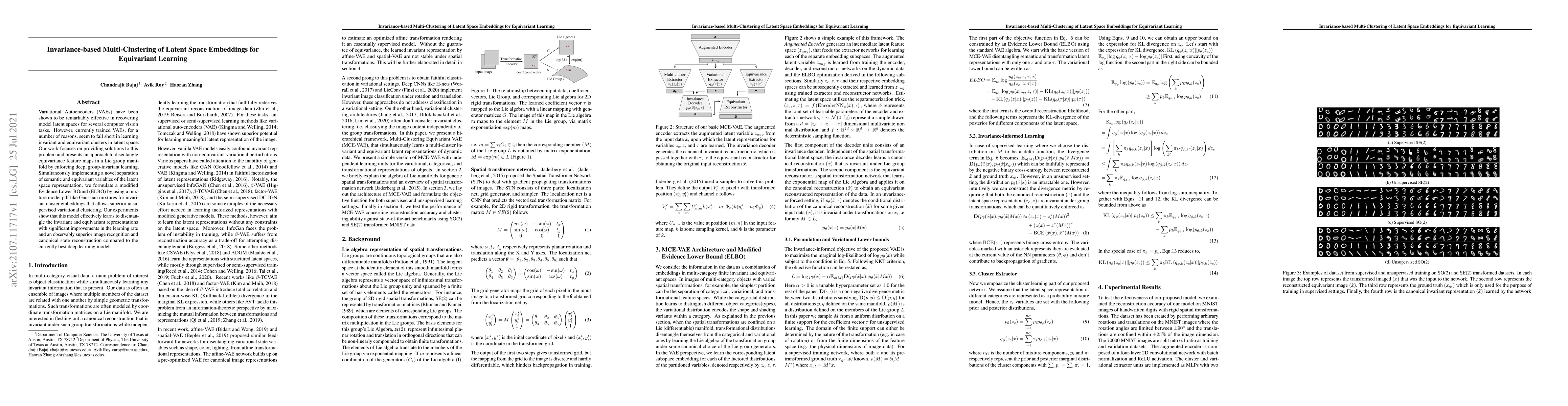This paper proposes a method to enhance VAEs for learning invariant and equivariant clusters in latent space by enforcing group-invariant learning through a modified ELBO and disentanglement of semantic and equivariant variables. The results show improved learning rate and superior image recognition and state reconstruction compared to existing models.