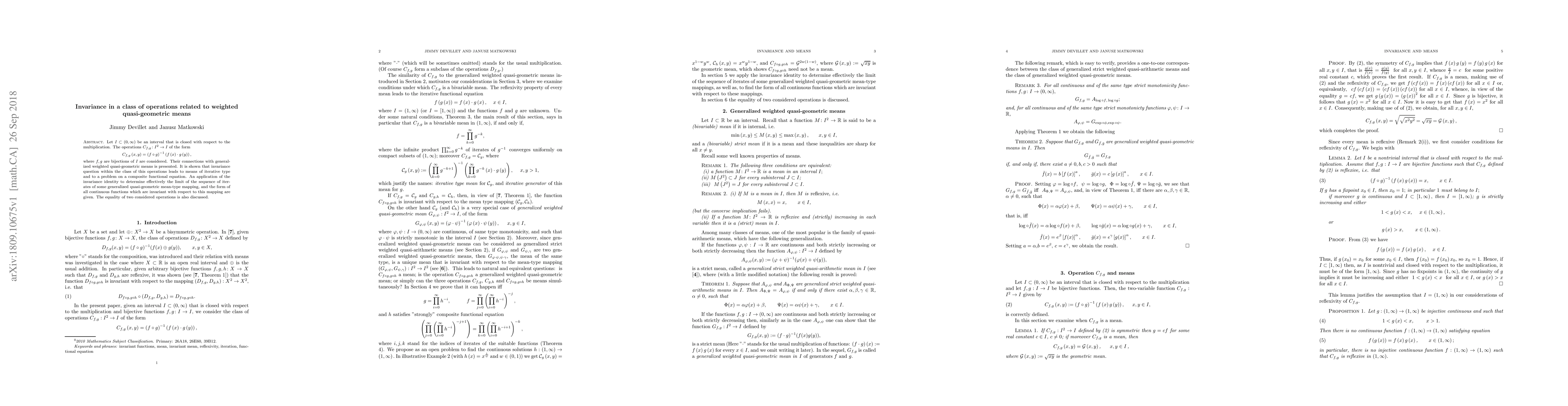 This paper explores operations $C_{f,g}$ on a multiplicative interval $I$ and their relation to generalized weighted quasi-geometric means. It demonstrates invariance within these operations leads to iterative means and composite functional equations, and provides methods for determining limits of iterated sequences and invariant functions.
