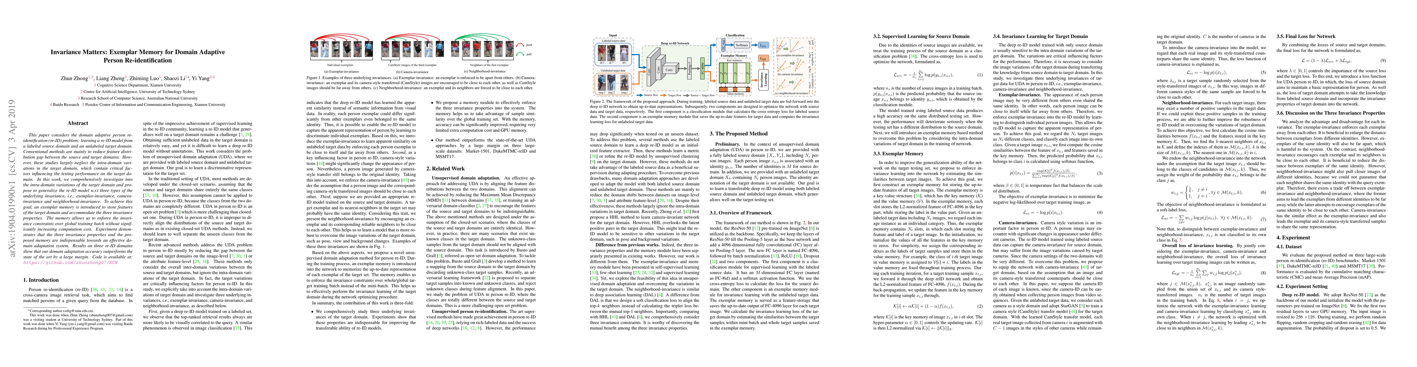 This paper proposes a method to enhance domain adaptive person re-identification by addressing intra-domain variations through exemplar, camera, and neighborhood invariances using an exemplar memory. The approach significantly improves domain adaptation accuracy over state-of-the-art methods.
