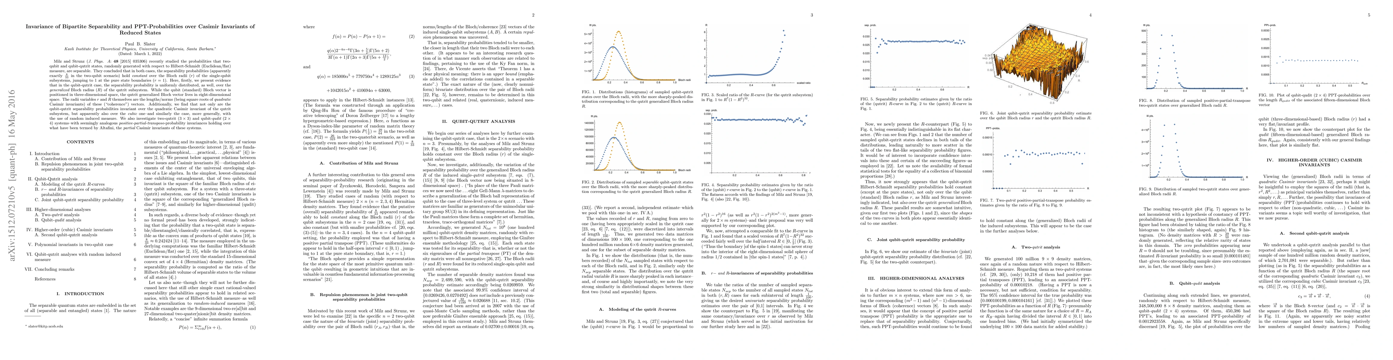 Milz and Strunz ({\it J. Phys. A}: {\bf{48}} [2015] 035306) recently studied the probabilities that two-qubit and qubit-qutrit states, randomly generated with respect to Hilbert-Schmidt (Euclidean/flat) measure, are separable. They concluded that in both cases, the separability probabilities (apparently exactly $\frac{8}{33}$ in the two-qubit scenario) hold {\it constant} over the Bloch radii ($r$) of the single-qubit subsystems, jumping to 1 at the pure state boundaries ($r=1$). Here, firstly, we present evidence that in the qubit-qutrit case, the separability probability is uniformly distributed, as well, over the {\it generalized} Bloch radius ($R$) of the qutrit subsystem. While the qubit (standard) Bloch vector is positioned in three-dimensional space, the qutrit generalized Bloch vector lives in eight-dimensional space. The radii variables $r$ and $R$ themselves are the lengths/norms (being square roots of {\it quadratic} Casimir invariants) of these ("coherence") vectors. Additionally, we find that not only are the qubit-qutrit separability probabilities invariant over the quadratic Casimir invariant of the qutrit subsystem, but apparently also over the {\it cubic} one--and similarly the case, more generally, with the use of random induced measure. We also investigate two-qutrit ($3 \times 3$) and qubit-{\it qudit} ($2 \times 4$) systems--with seemingly analogous {\it positive-partial-transpose}-probability invariances holding over what have been termed by Altafini, the {\it partial} Casimir invariants of these systems.