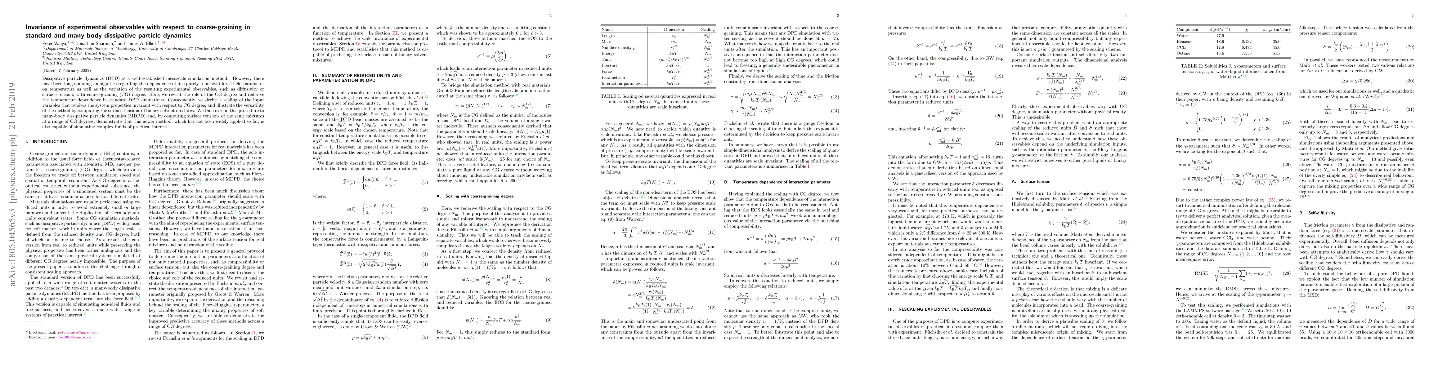 This paper revisits the temperature dependence in standard DPD simulations and derives a scaling method that maintains experimental observables invariant under coarse-graining. It extends this approach to many-body dissipative particle dynamics (MDPD) and demonstrates its applicability in simulating complex fluid mixtures.