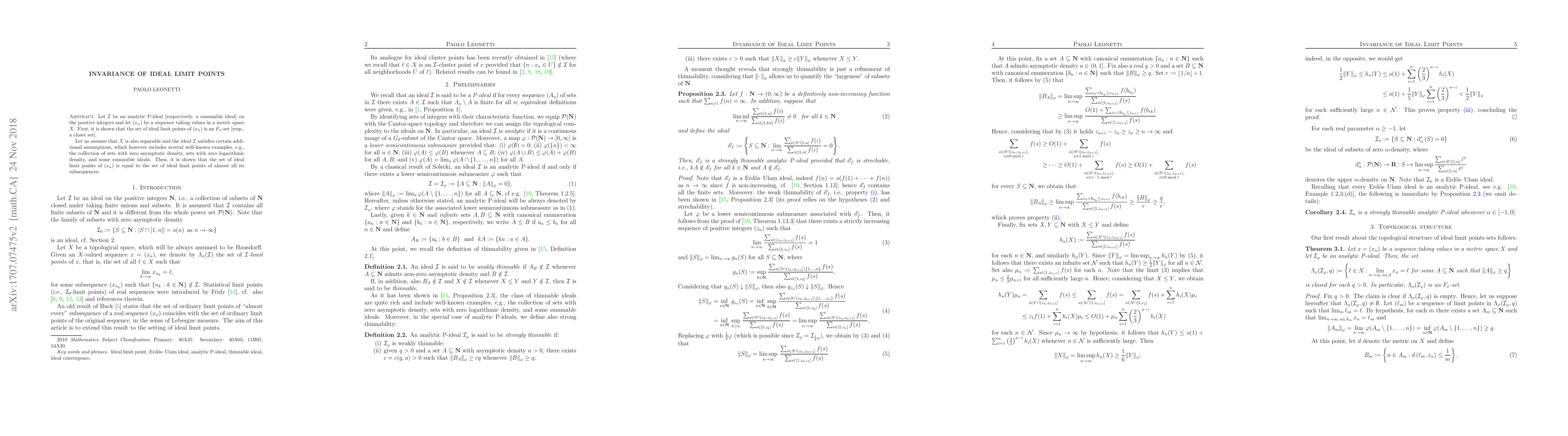 This paper shows that ideal limit points of a sequence in a metric space are equal to those of almost all its subsequences for sequences over analytic P-ideals or summable ideals on the positive integers.