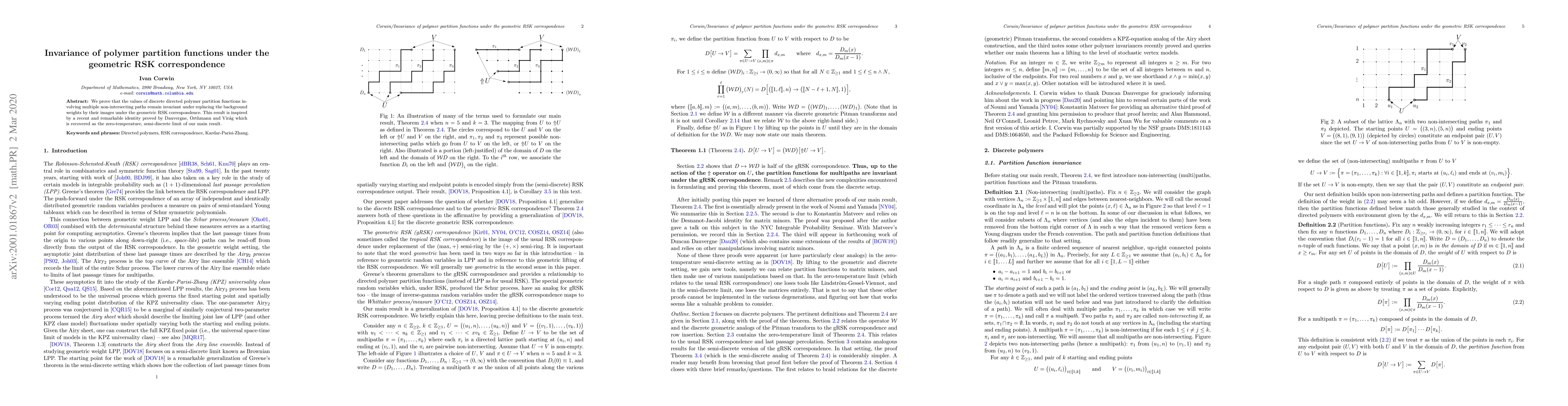 The paper demonstrates that polymer partition functions with multiple non-intersecting paths maintain their values under the geometric RSK correspondence, extending a recent identity from Dauvergne, Orthmann, and Virág to the semi-discrete limit.