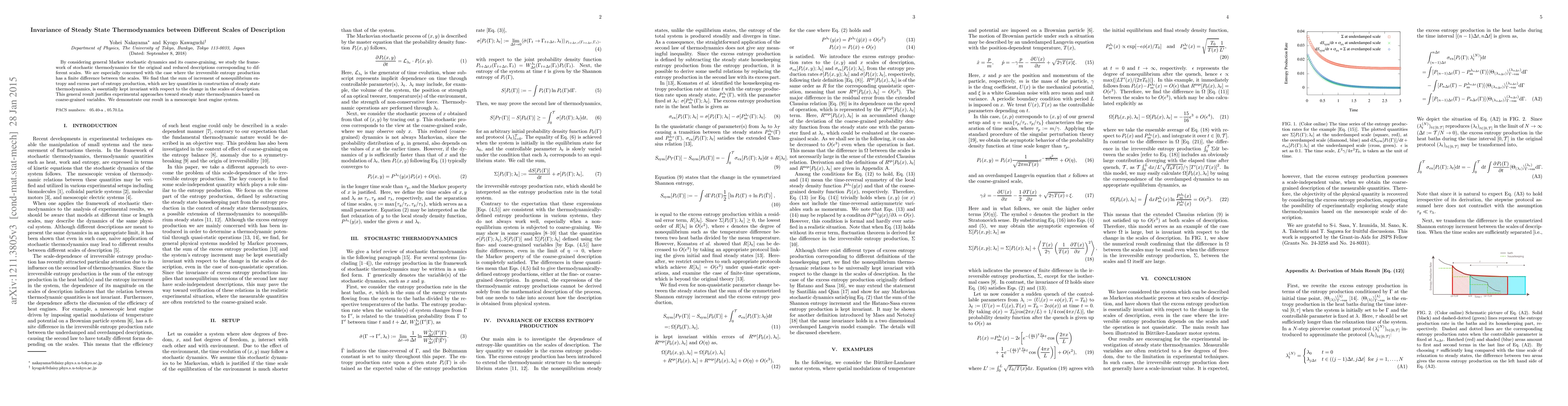 This paper investigates the invariance of steady state thermodynamics across different scales of description using Markov stochastic dynamics and coarse-graining. It finds that the sum of nonequilibrium entropy increment and excess entropy production remains invariant, justifying experimental approaches based on coarse-grained variables, as demonstrated in a mesoscopic heat engine system.