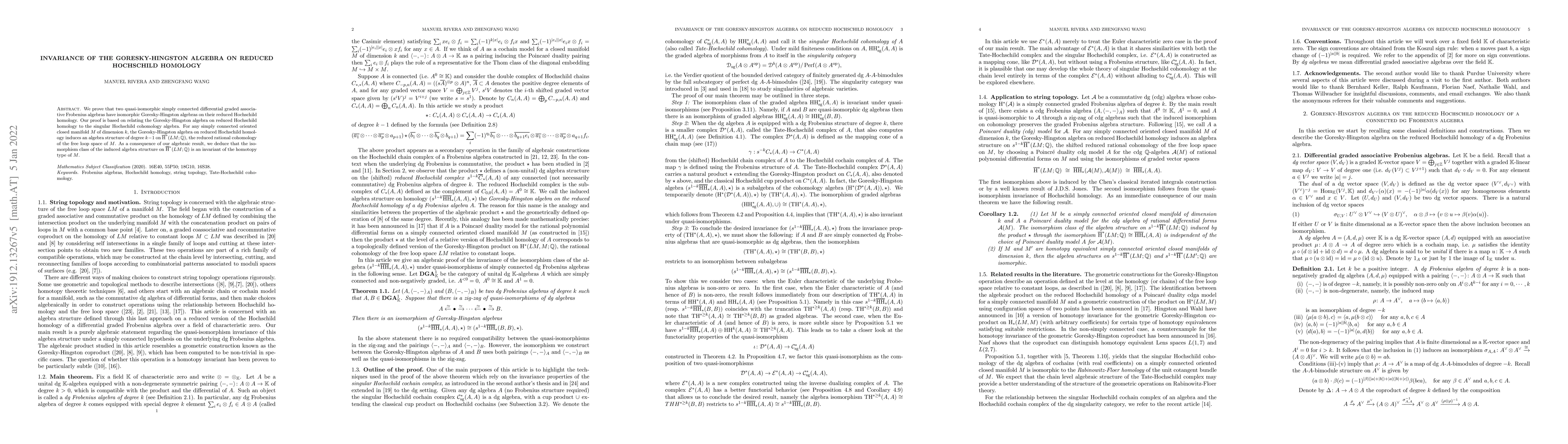 We prove that two quasi-isomorphic simply connected differential graded associative Frobenius algebras have isomorphic Goresky-Hingston algebras on their reduced Hochschild homology. Our proof is based on relating the Goresky-Hingston algebra on reduced Hochschild homology to the singular Hochschild cohomology algebra. For any simply connected oriented closed manifold $M$ of dimension $k$, the Goresky-Hingston algebra on reduced Hochschild homology induces an algebra structure of degree $k-1$ on $\bar{H}^*(LM;\mathbb{Q})$, the reduced rational cohomology of the free loop space of $M$. As a consequence of our algebraic result, we deduce that the isomorphism class of the induced algebra structure on $\bar{H}^*(LM;\mathbb{Q})$ is an invariant of the homotopy type of $M$.