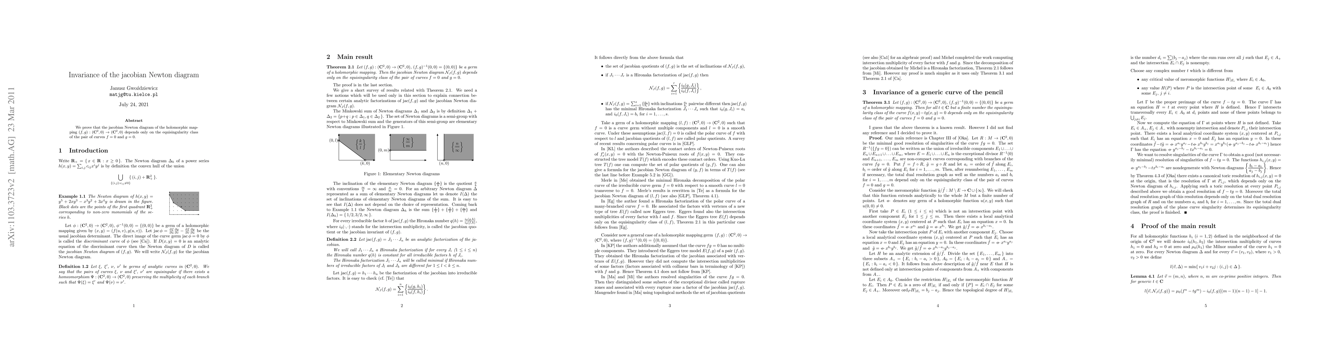 Summary: This paper demonstrates that the Jacobian Newton diagram for a holomorphic mapping between complex planes is invariant under the equisingularity class of the curves defined by $f=0$ and $g=0$. This invariance highlights a fundamental property of the mapping's singularity structure.