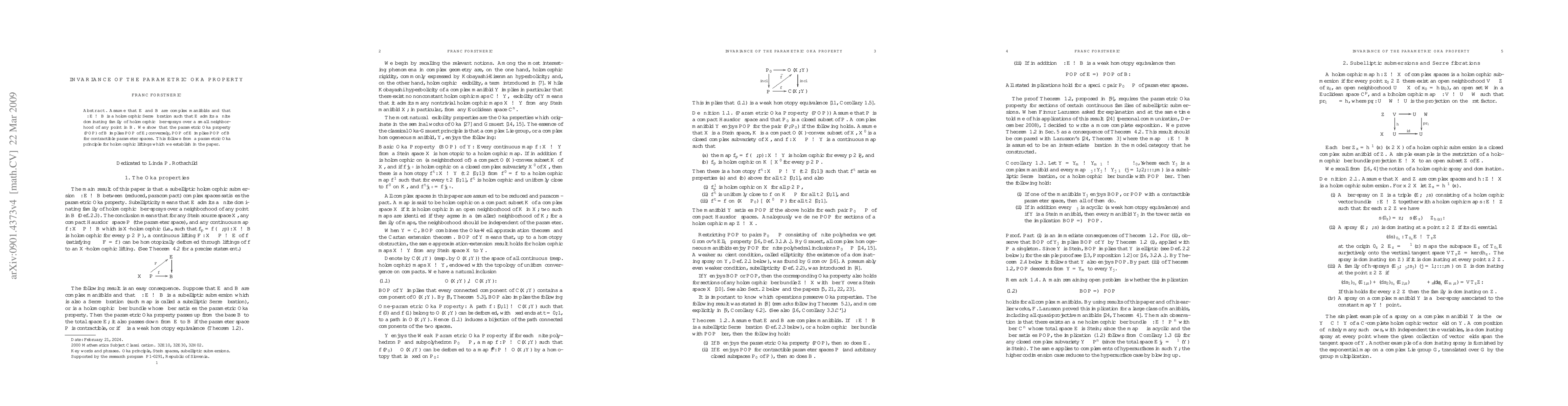 This paper demonstrates that the parametric Oka property (POP) of a complex manifold B implies the POP of a complex manifold E under certain fibration conditions, and vice versa for contractible parameter spaces, using a new parametric Oka principle for holomorphic liftings.