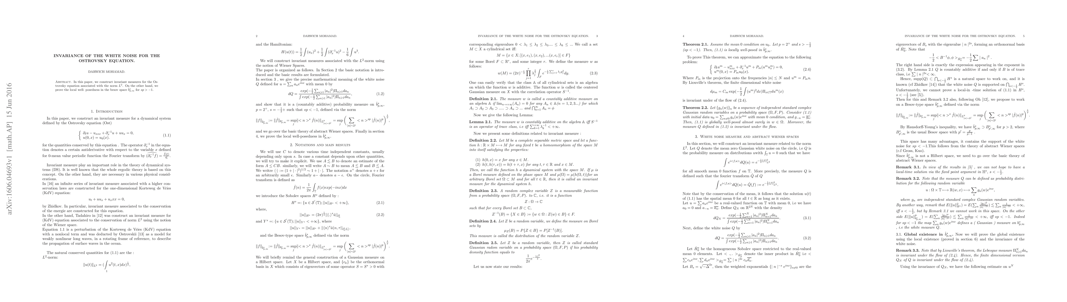 The paper proves local well-posedness of the Ostrovsky equation in Besov spaces with s > -1 and constructs invariant measures for L^2 norm.