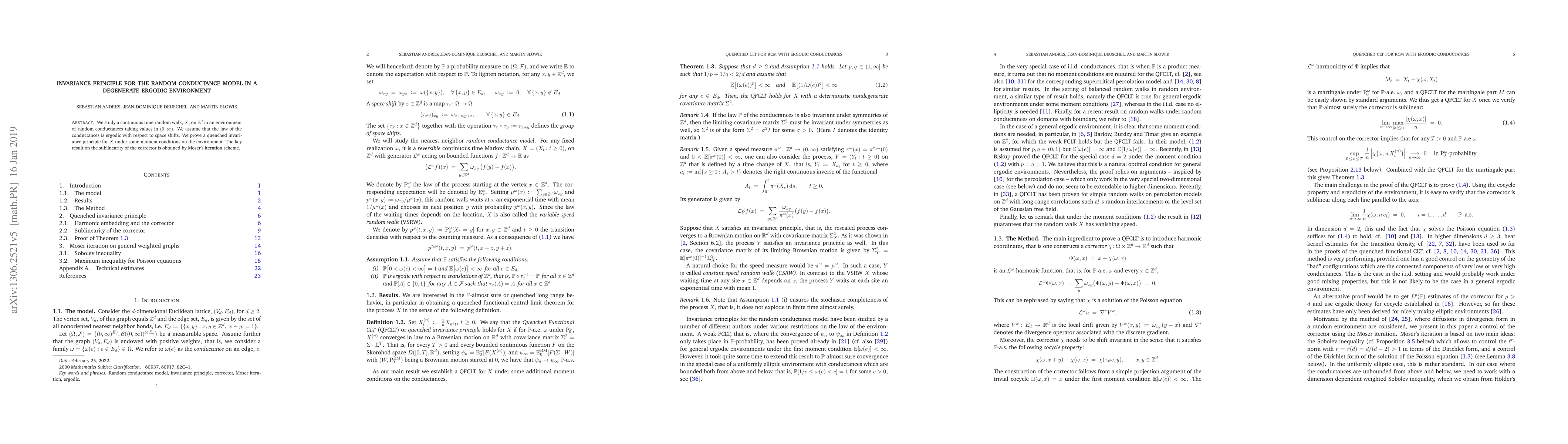 This paper proves a quenched invariance principle for a random walk in an environment with ergodic conductances, showing that the walk's behavior becomes more predictable under certain conditions.