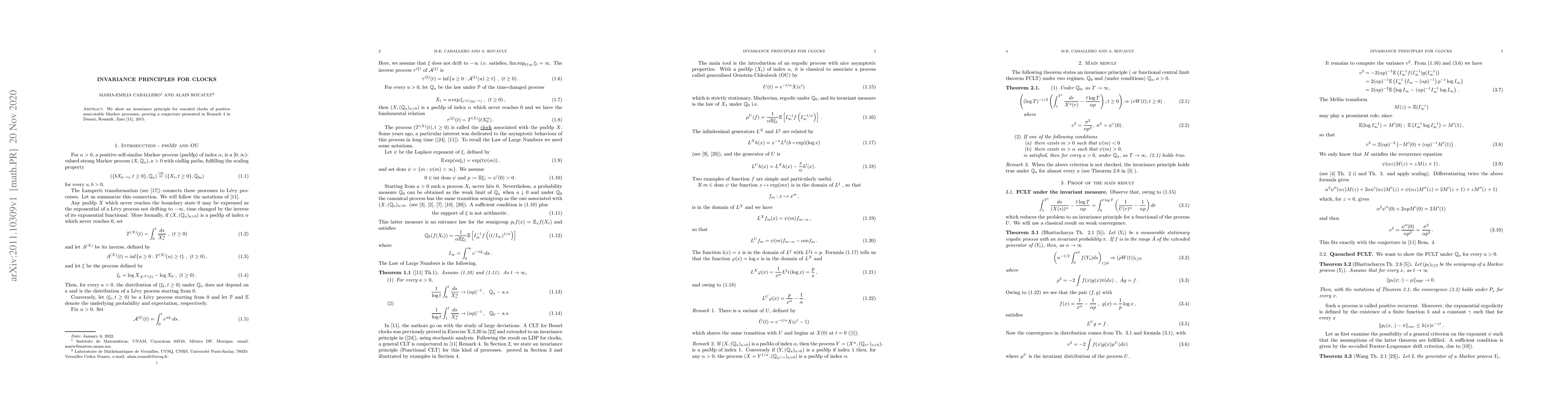 Summary: This paper establishes an invariance principle for rescaled clocks of positive semi-stable Markov processes, confirming a conjecture from a 2015 work by Demni, Rouault, and Zani. The findings contribute to the understanding of stochastic processes and their scaling properties.