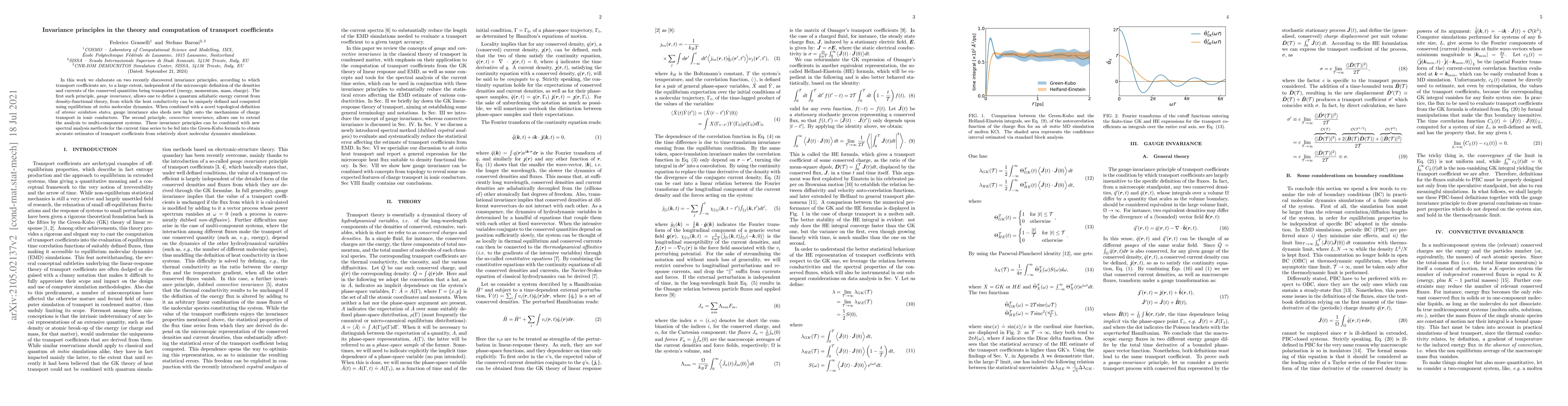 This paper explores two key invariance principles—gauge and convective invariance—that demonstrate transport coefficients' independence from the microscopic definition of densities and currents. These principles enable the computation of heat conductivity and charge transport mechanisms using ab initio molecular dynamics.
