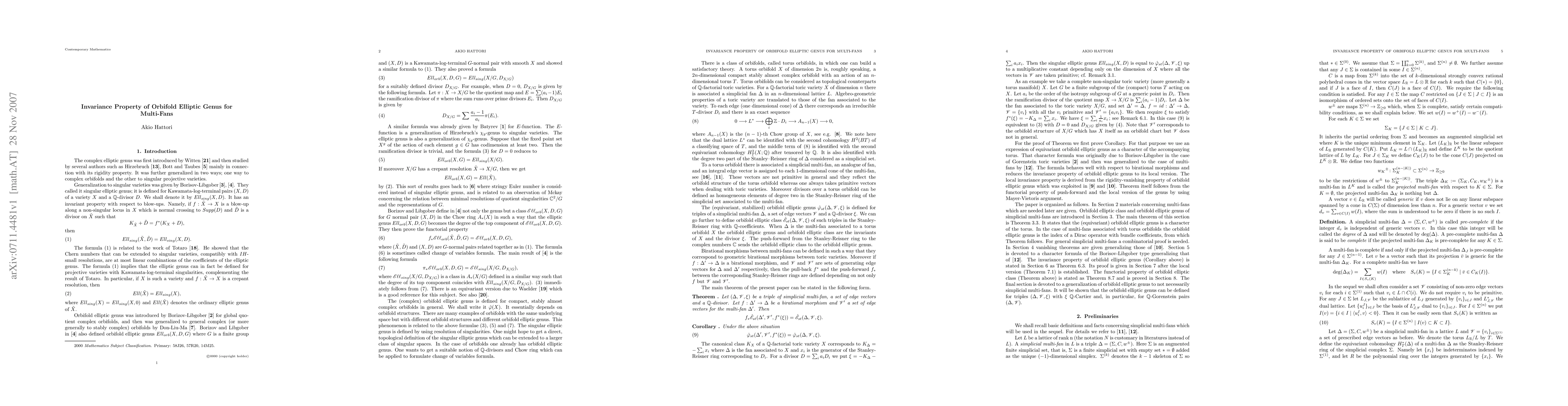 Multi-fan is an analogous notion of fan. As a fan is associated to a toric variety a multi-fan is associated to a torus orbifold. Orbifold elliptic class and orbifold elliptic genus are defined for a triple of a multi-fan, a set of generating integral vectors of one dimensional cones and a $\mathbb{Q}$ divisor. They are shown to behave functorially with respect to birational morphisms between these triples. The result may be considered as a combinatorial or topological analogue of the main result of Borisov and Libgober, McKay correspondence for elliptic genera, Ann. of Math., 161 (2005).