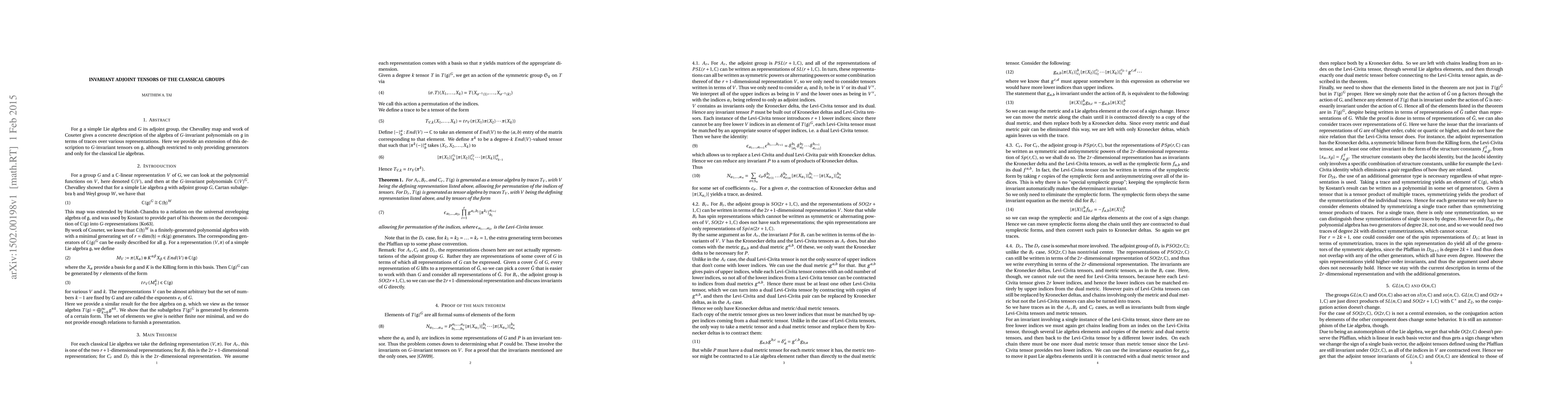 This paper extends the Chevalley map and Coxeter's work to describe $G$-invariant tensors on simple Lie algebra $\mathfrak{g}$, providing generators for these tensors specifically for classical Lie algebras. The focus is on the concrete representation of these tensors through traces over various representations.