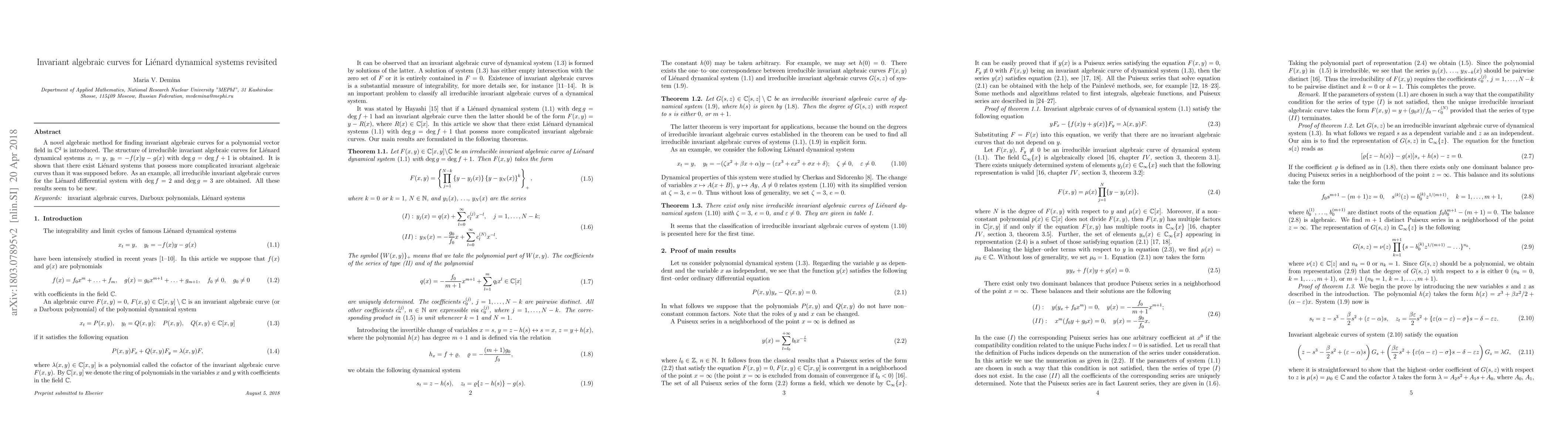 A novel algebraic method for finding invariant algebraic curves for a polynomial vector field in $\mathbb{C}^2$ is introduced. The structure of irreducible invariant algebraic curves for Li\'{e}nard dynamical systems $x_t=y$, $y_t=-g(x)y-f(x)$ with $\text{deg} f=\text{deg} g+1$ is obtained. It is shown that there exist Li\'{e}nard systems that possess more complicated invariant algebraic curves than it was supposed before. As an example, all irreducible invariant algebraic curves for the Li\'{e}nard differential system with $\text{deg} f=3$, $\text{deg} g=2$ are obtained. All these results seem to be new.