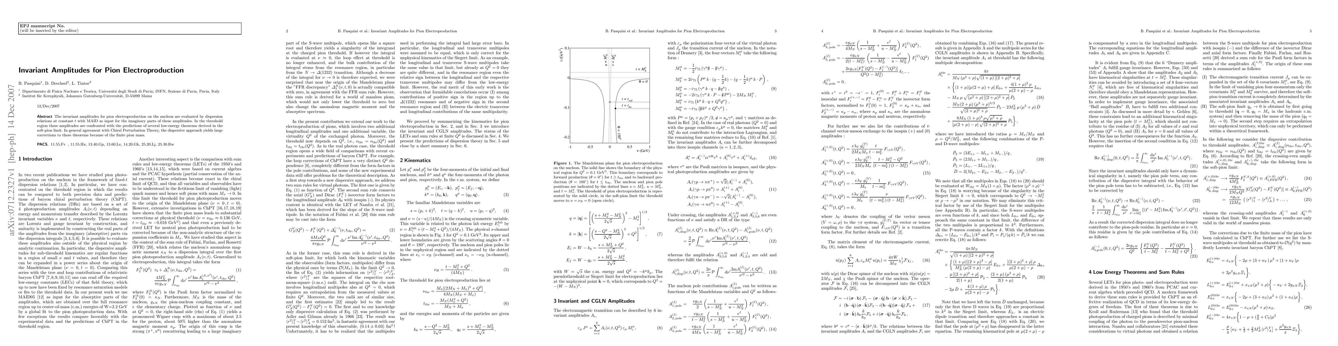This paper evaluates invariant amplitudes for pion electroproduction using dispersion relations and MAID input, finding significant corrections to low-energy theorems due to the finite pion mass, in agreement with Chiral Perturbation Theory.