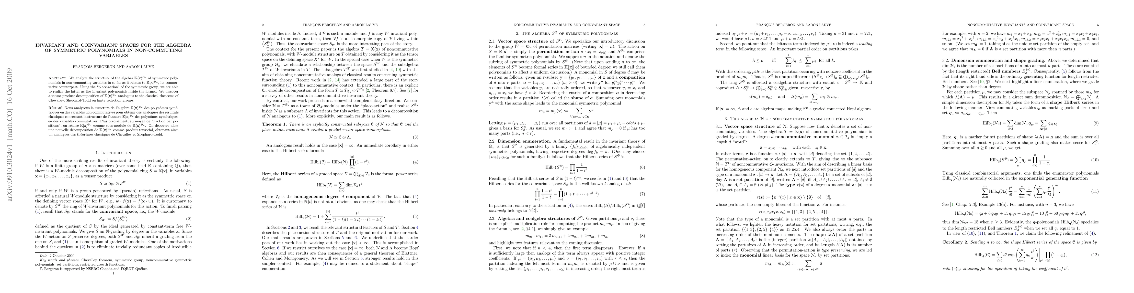 This paper explores the algebra N of symmetric polynomials in non-commuting variables, revealing its invariant polynomials through the "place-action" of the symmetric group. It uncovers a tensor product decomposition of N, paralleling classical theorems on finite reflection groups.
