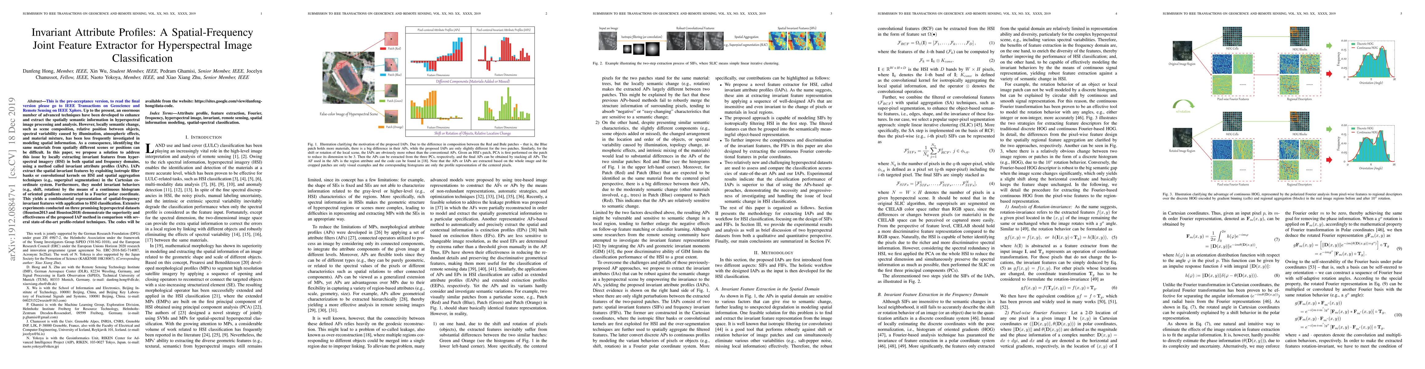 Up to the present, an enormous number of advanced techniques have been developed to enhance and extract the spatially semantic information in hyperspectral image processing and analysis. However, locally semantic change, such as scene composition, relative position between objects, spectral variability caused by illumination, atmospheric effects, and material mixture, has been less frequently investigated in modeling spatial information. As a consequence, identifying the same materials from spatially different scenes or positions can be difficult. In this paper, we propose a solution to address this issue by locally extracting invariant features from hyperspectral imagery (HSI) in both spatial and frequency domains, using a method called invariant attribute profiles (IAPs). IAPs extract the spatial invariant features by exploiting isotropic filter banks or convolutional kernels on HSI and spatial aggregation techniques (e.g., superpixel segmentation) in the Cartesian coordinate system. Furthermore, they model invariant behaviors (e.g., shift, rotation) by the means of a continuous histogram of oriented gradients constructed in a Fourier polar coordinate. This yields a combinatorial representation of spatial-frequency invariant features with application to HSI classification. Extensive experiments conducted on three promising hyperspectral datasets (Houston2013 and Houston2018) demonstrate the superiority and effectiveness of the proposed IAP method in comparison with several state-of-the-art profile-related techniques. The codes will be available from the website: https://sites.google.com/view/danfeng-hong/data-code.