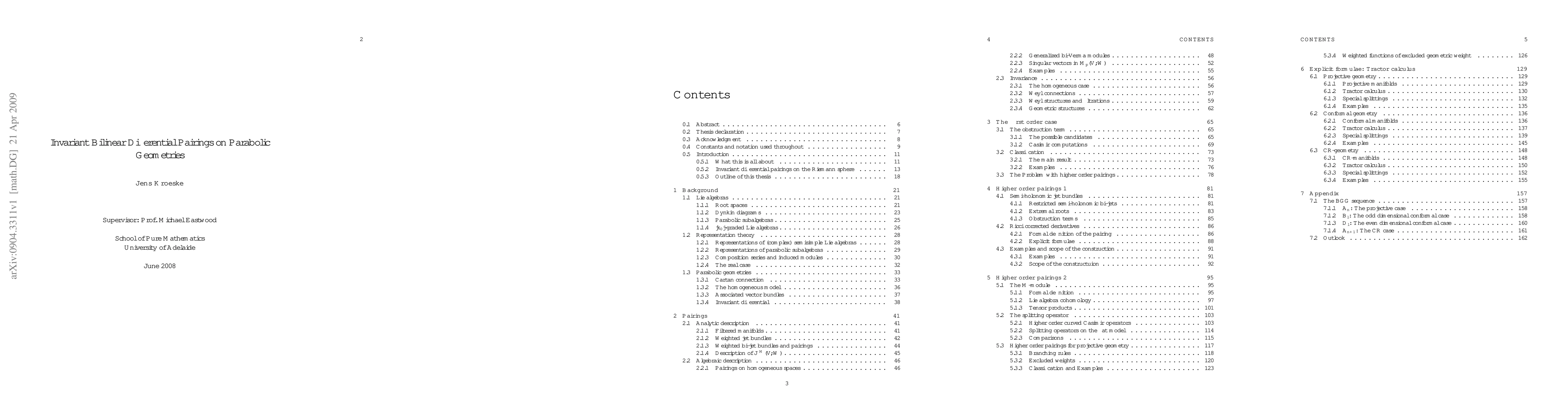 This paper explores invariant bilinear differential pairings on parabolic geometries, presenting their algebraic structure and classification, with a focus on homogeneous spaces. It also provides constructions and examples for specific geometries, highlighting complexities in higher-order pairings.